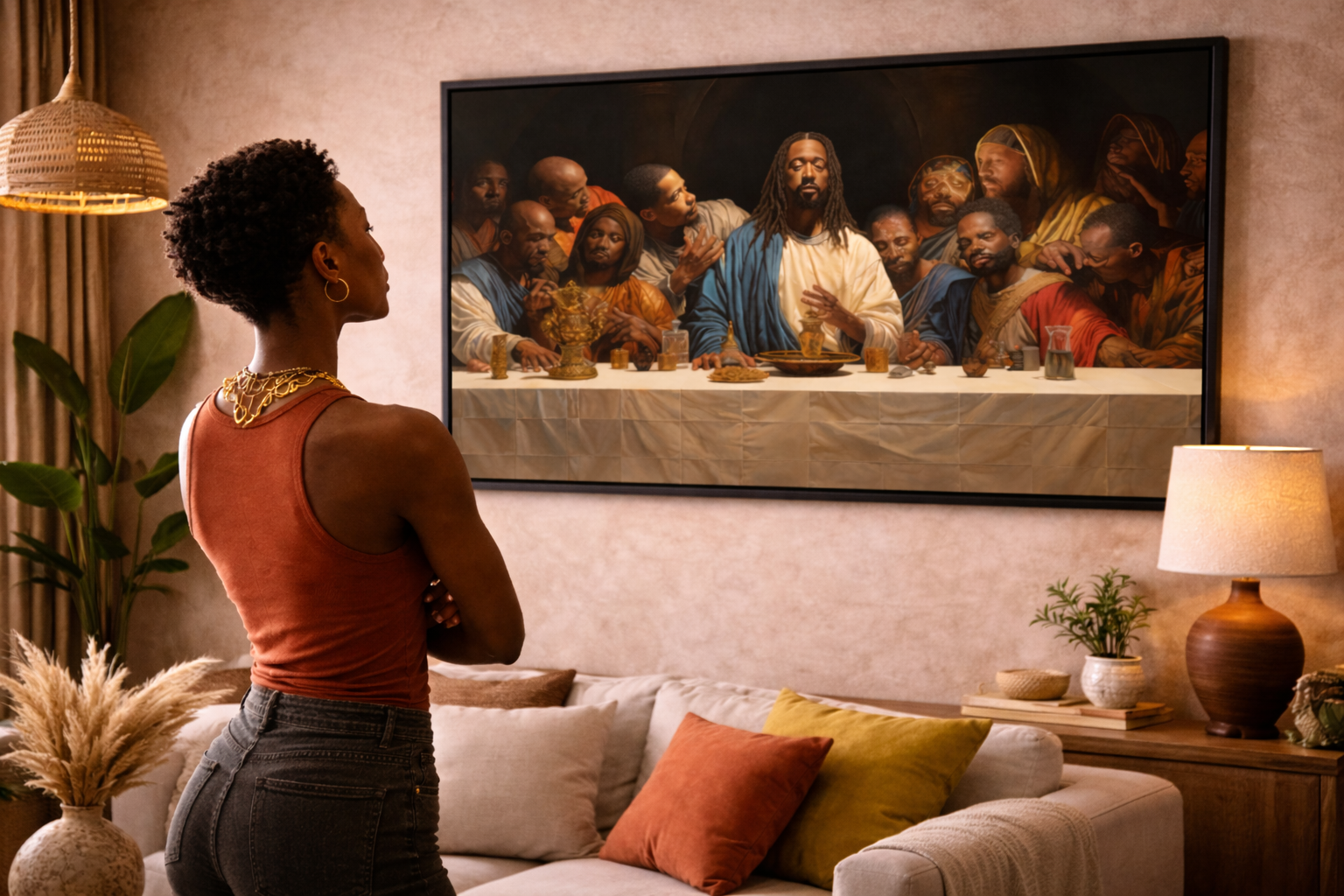 Black Jesus Last Supper Canvas Art | African American Wall Decor for Living Room v3