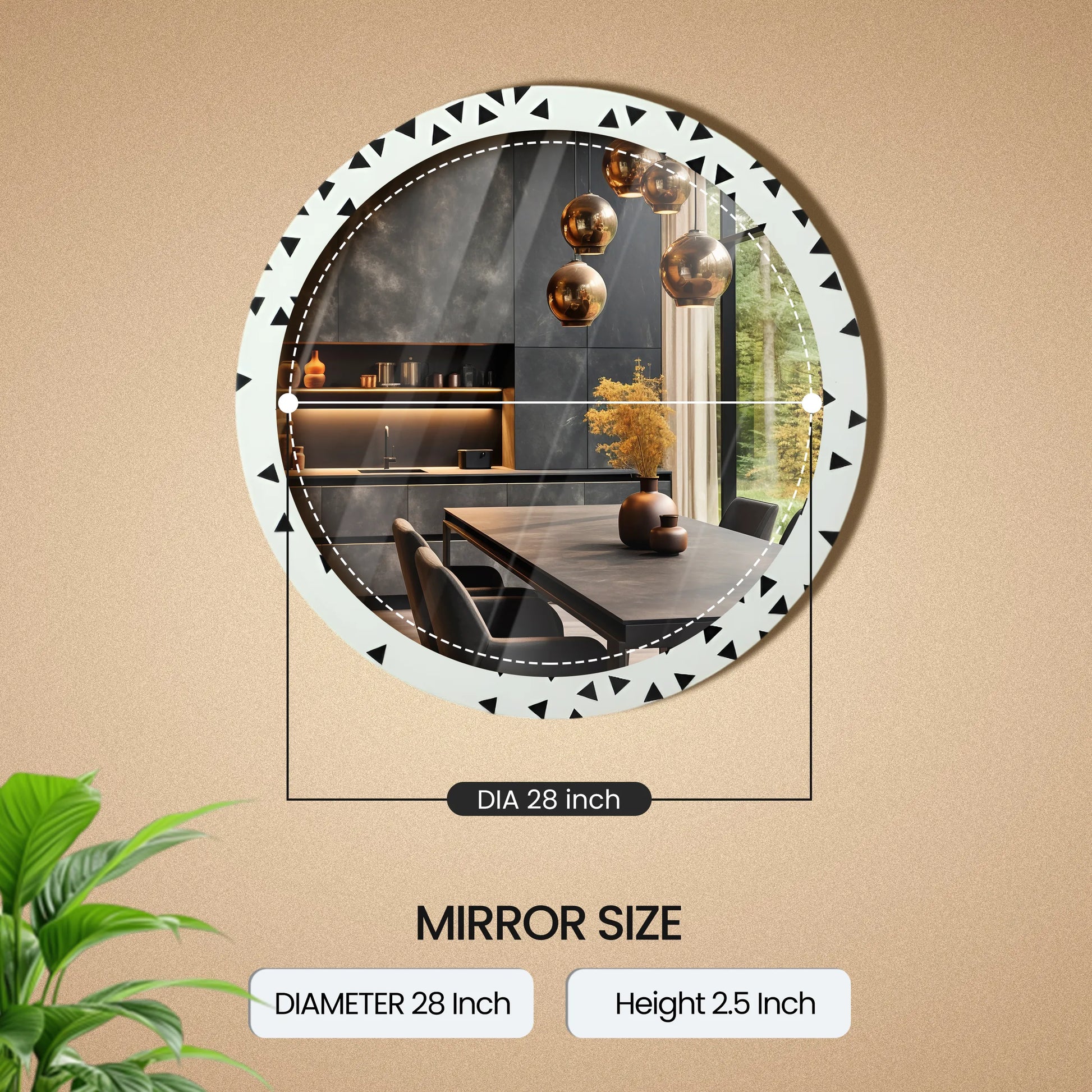 24" Round White & Black Geometric Triangle Pattern Wall Mirror