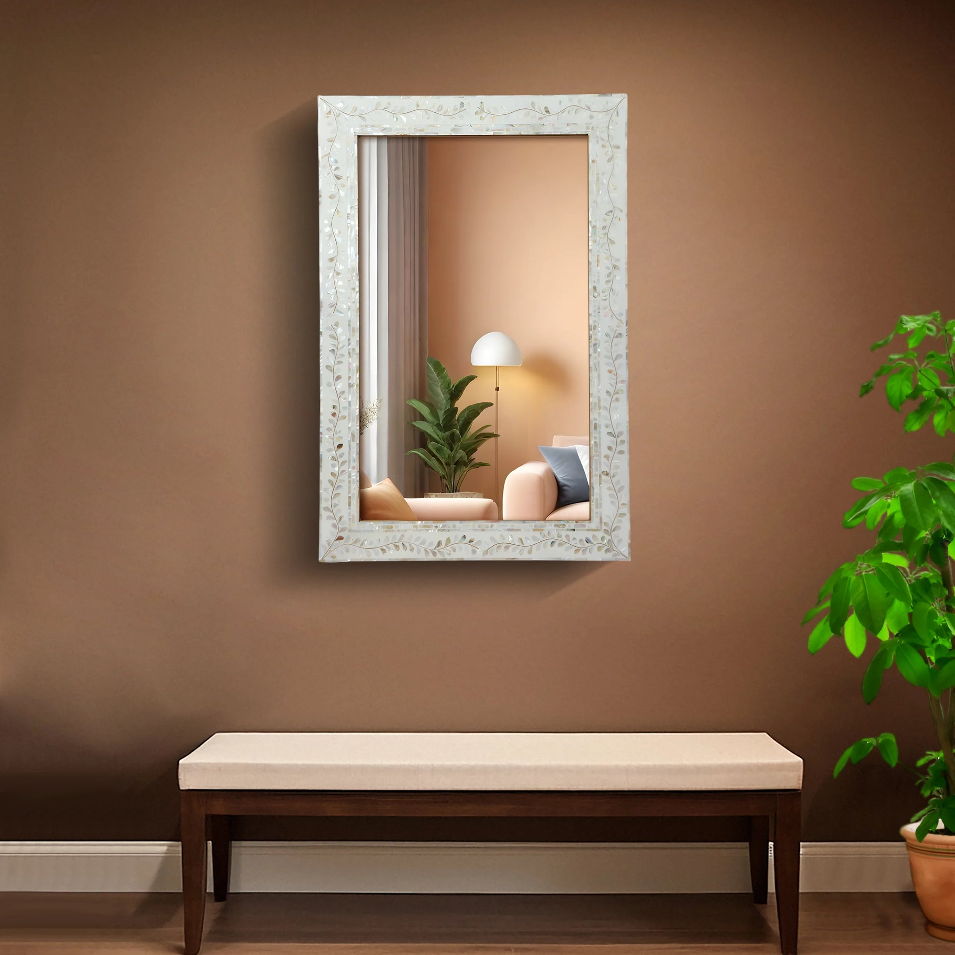 30x20" Rectangular Mother of Pearl & Resin Inlay Wall Hanging Mirror - White, Grey