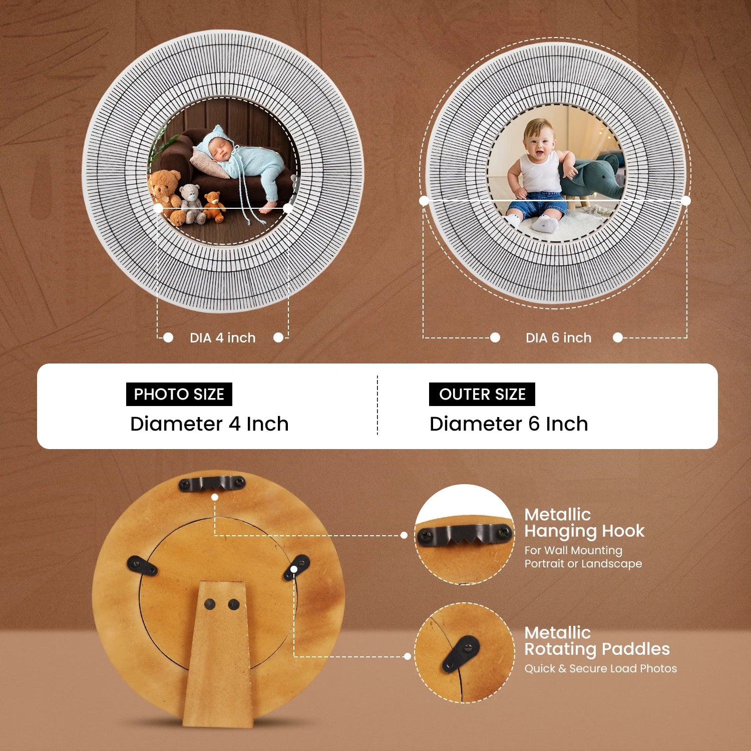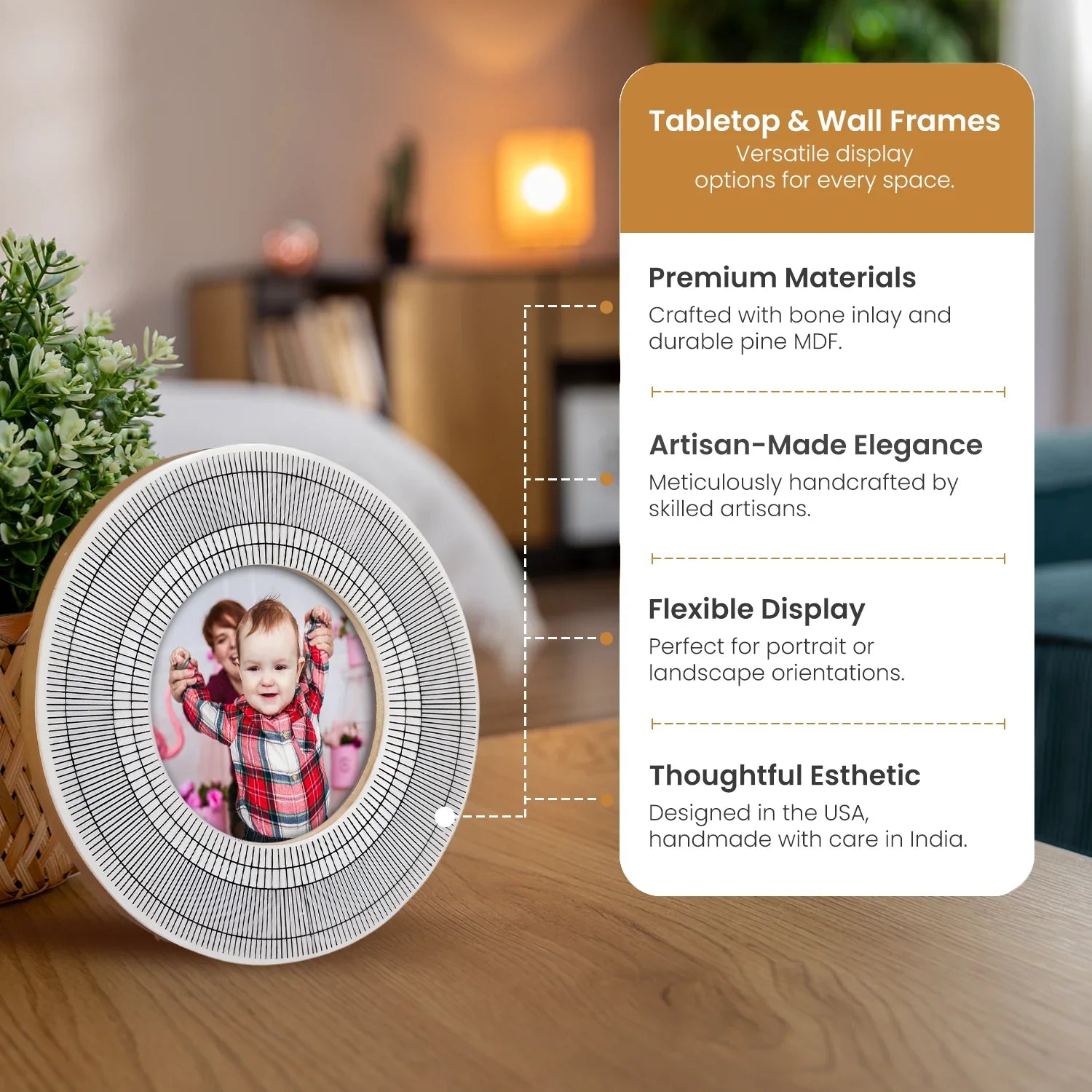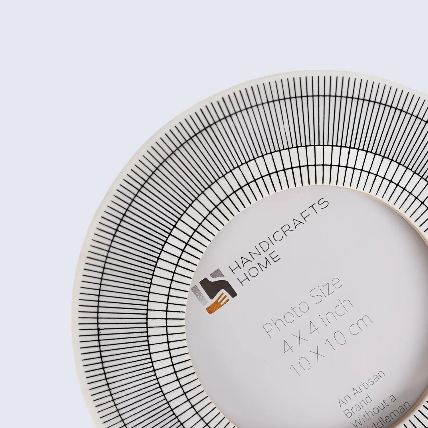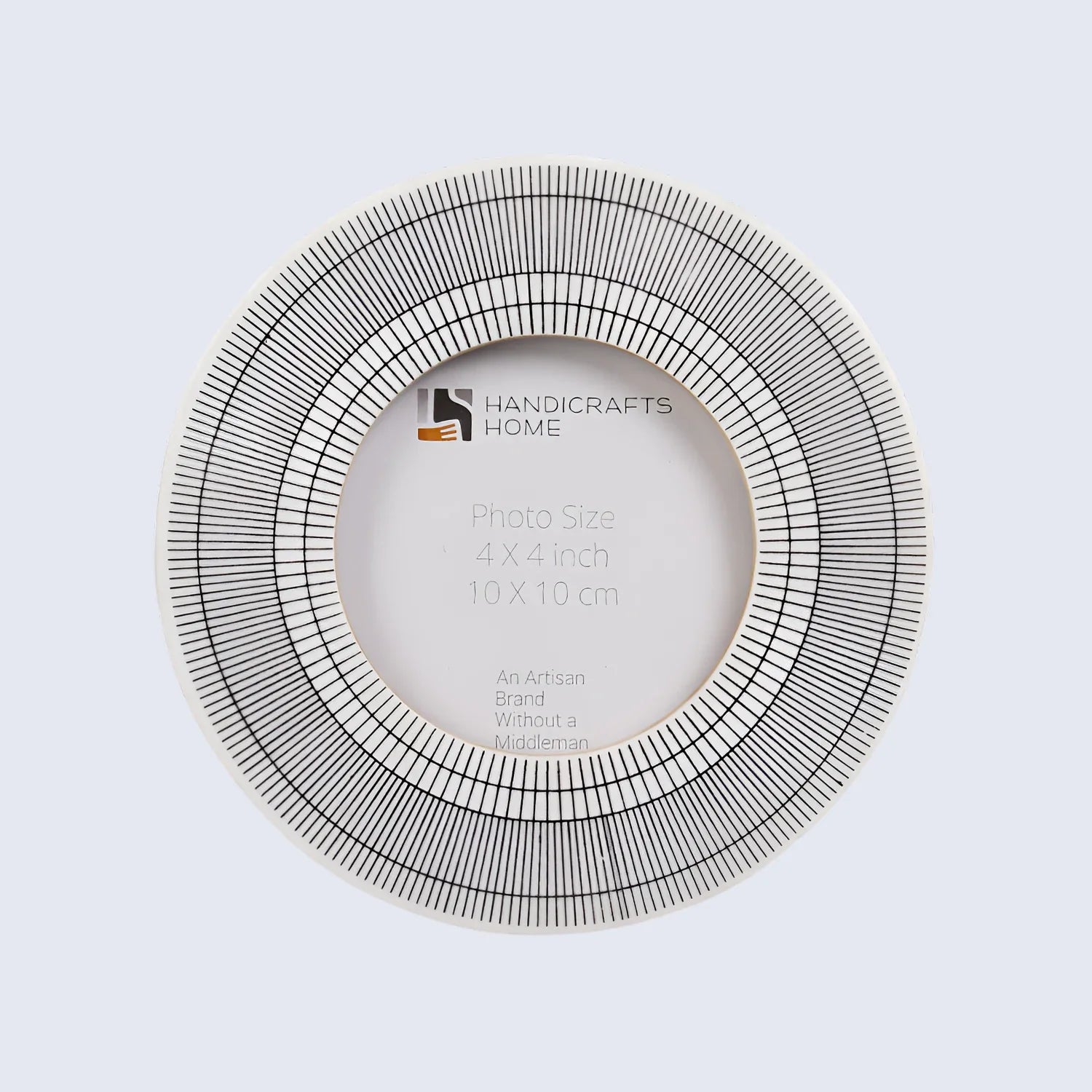Exquisite Artisan Detailing: Carefully Handmade by Skilled Indian artisans, this 4x4 Round Picture Frame showcases a beautiful black Linear Sunburst design against a clean white background. The detailed Resin inlay adds a sophisticated, Artistic flair, making it a standout accent in any space.