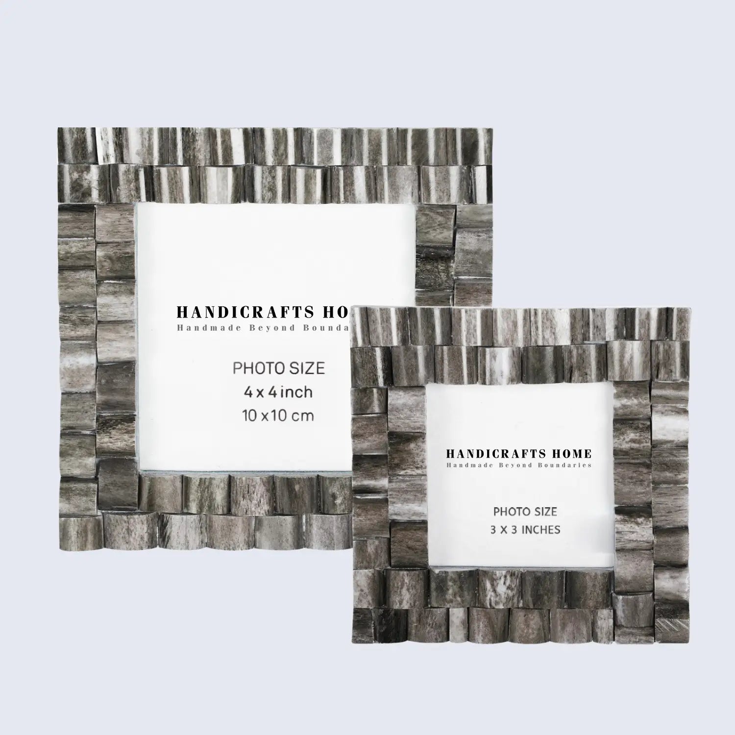 Baby Picture Frames Cornice Chain Pattern Bone & Resin Inlay Collection in Grey