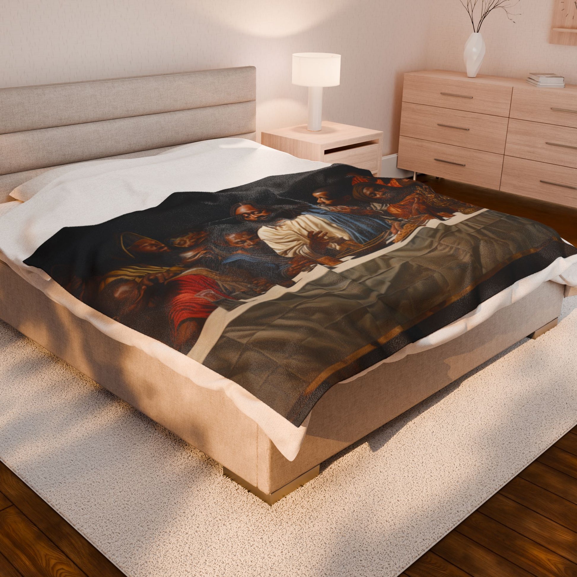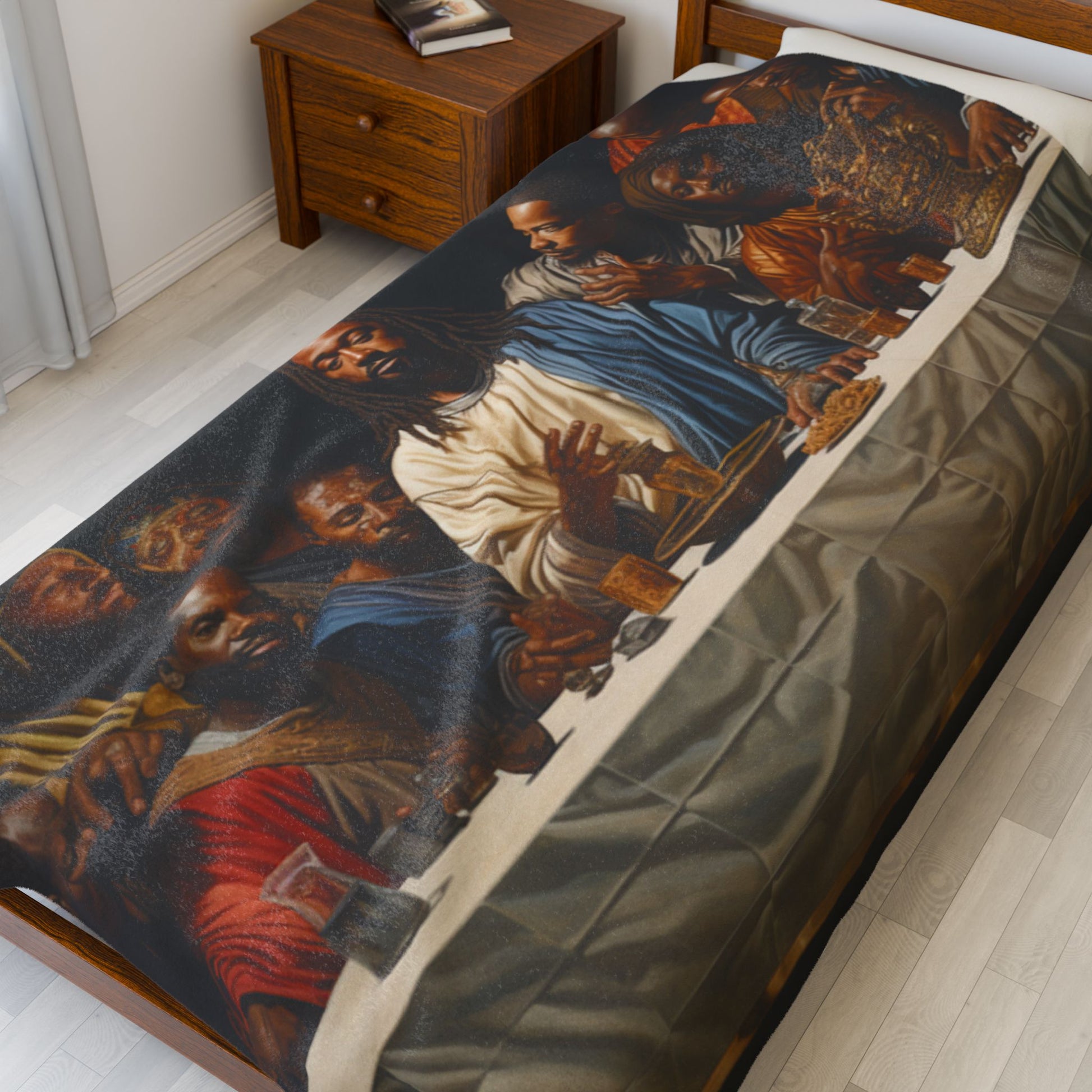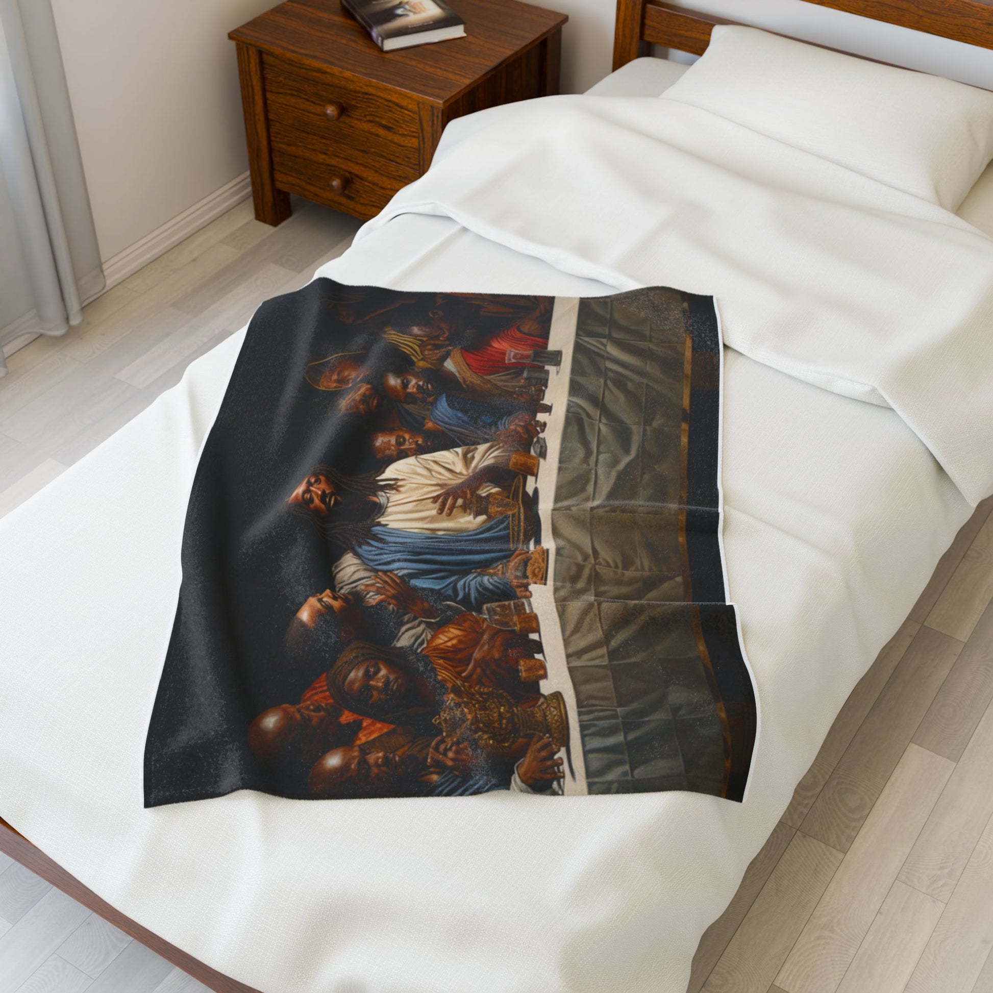 Black Jesus Last Supper Velveteen Plush Blanket African American Art