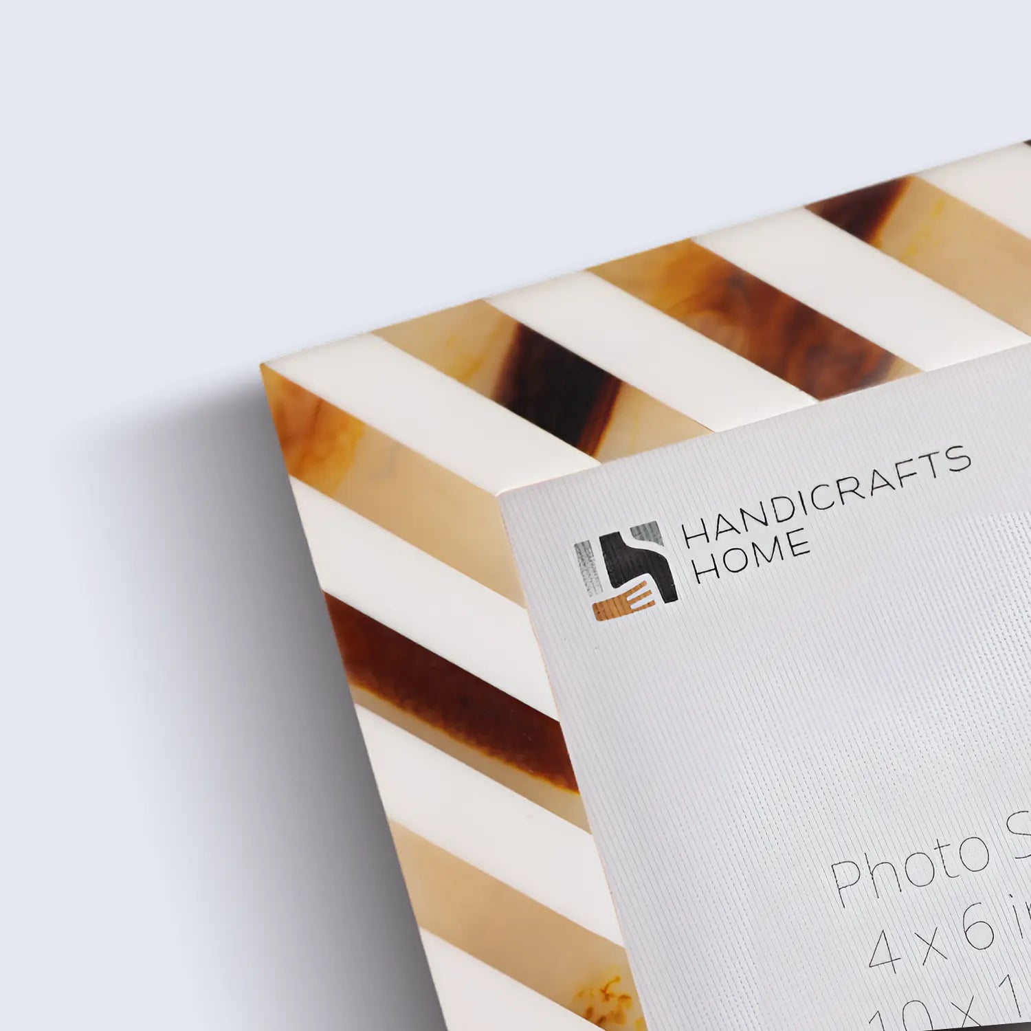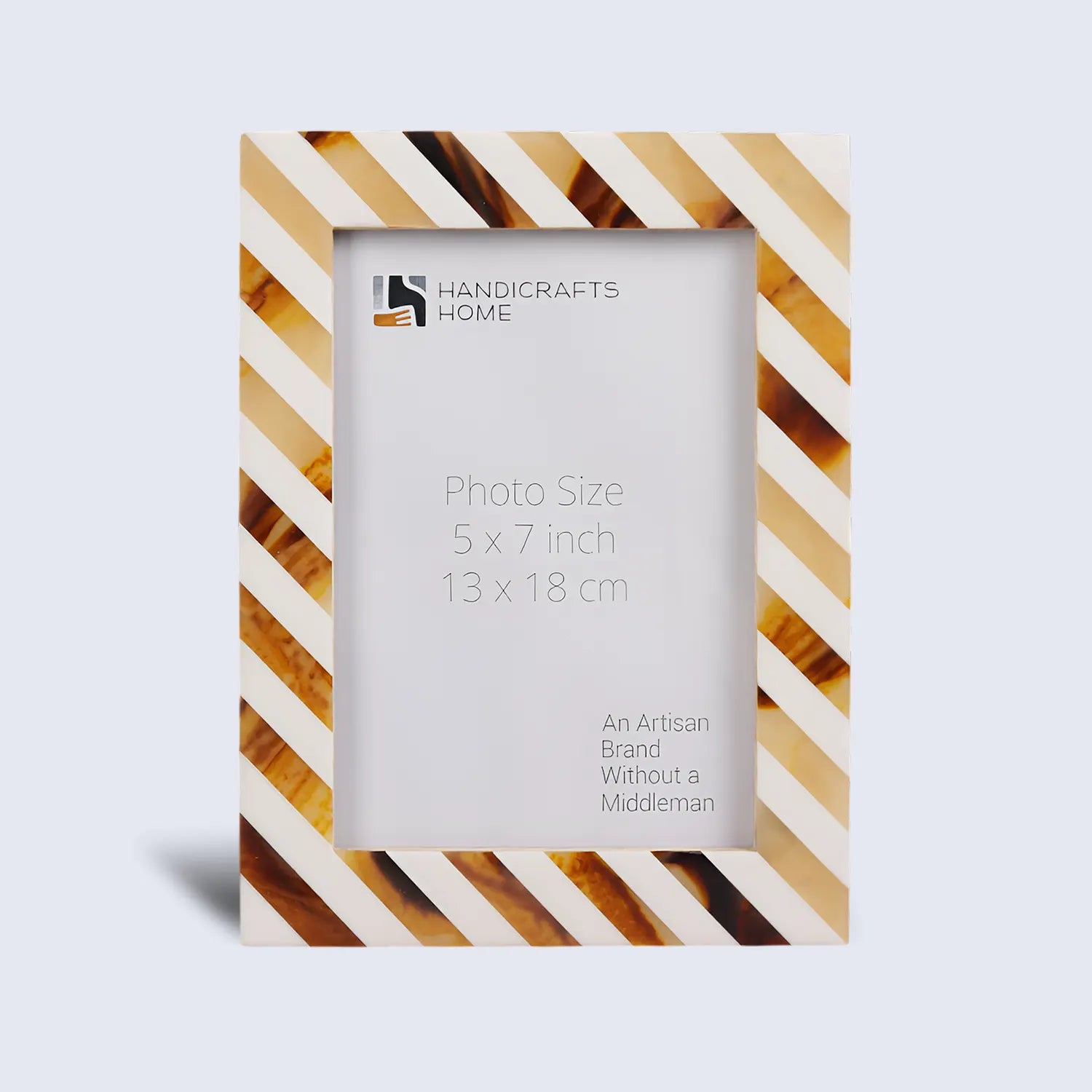 Handicrafts Home presents a beautifully made Picture Frame featuring Natural Resin Inlay & Bone Inlay Inlay in a bold Brown & White diagonal striped pattern. The handcrafted design brings an artisanal touch to Bohemian, Rustic, Farmhouse, or Global inspired interiors.