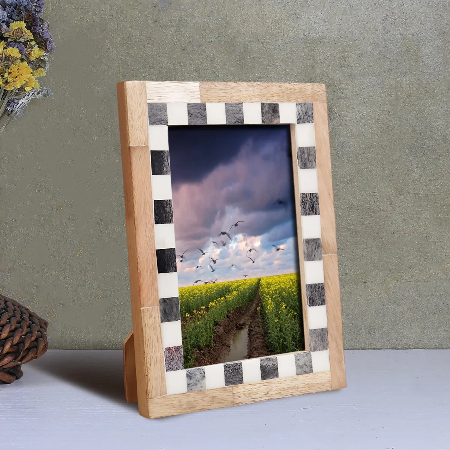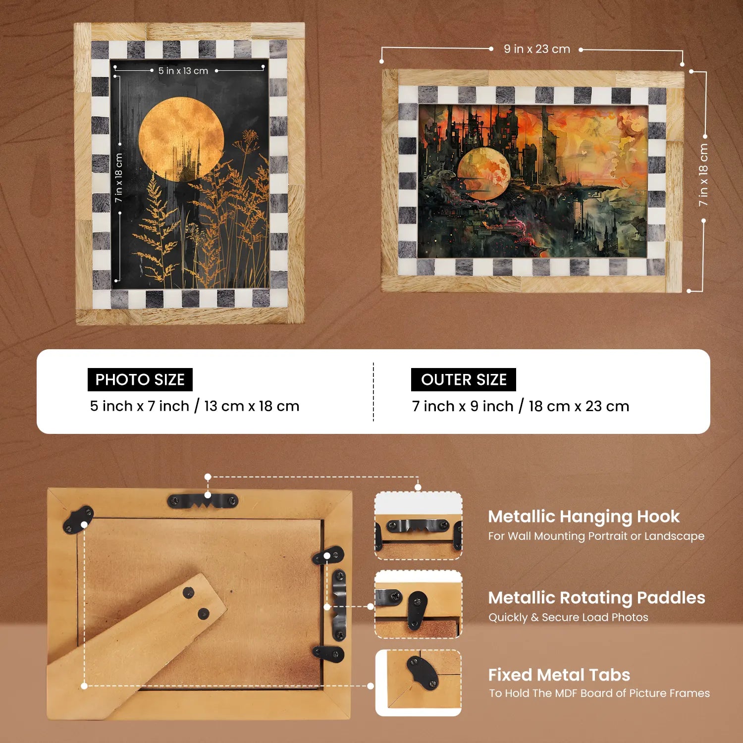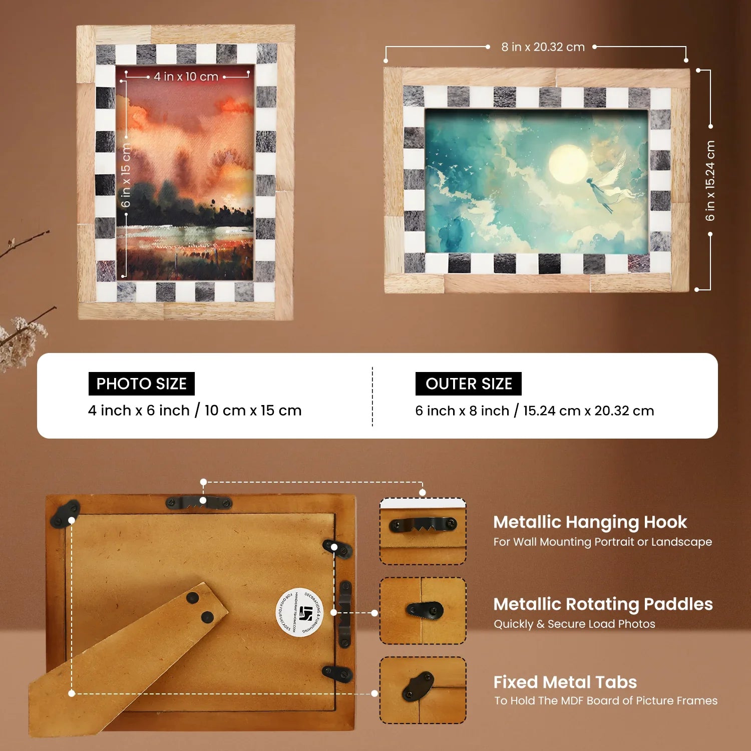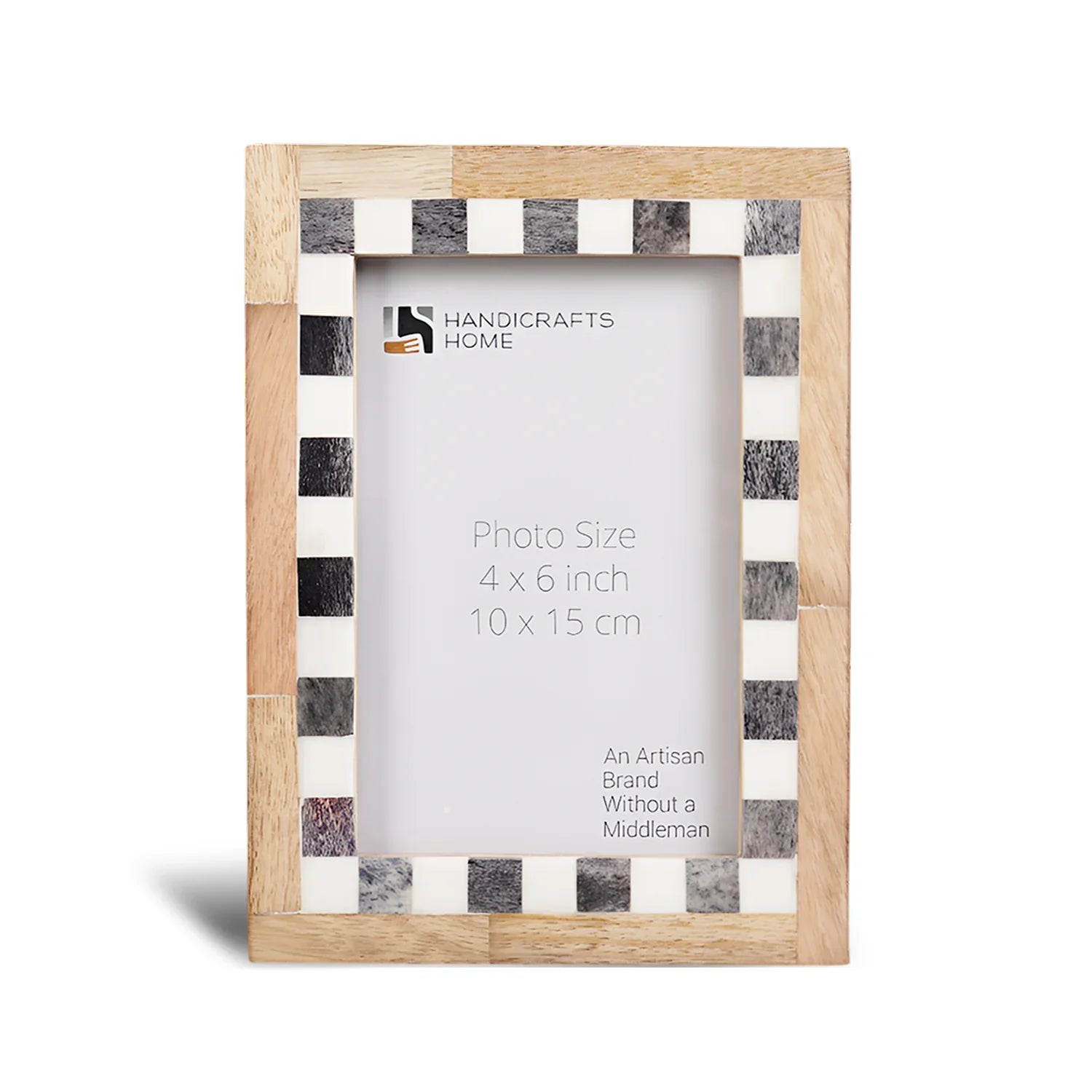 Crafted with Purpose & Precision: Each frame is handmade using bone inlay, wood, and Pine MDF—materials chosen for both beauty and durability. The intricate checkered pattern brings structure and style to your photo collection, while the smooth wooden edges add a grounding, natural touch.