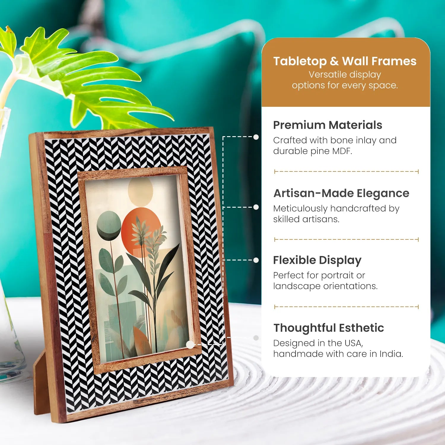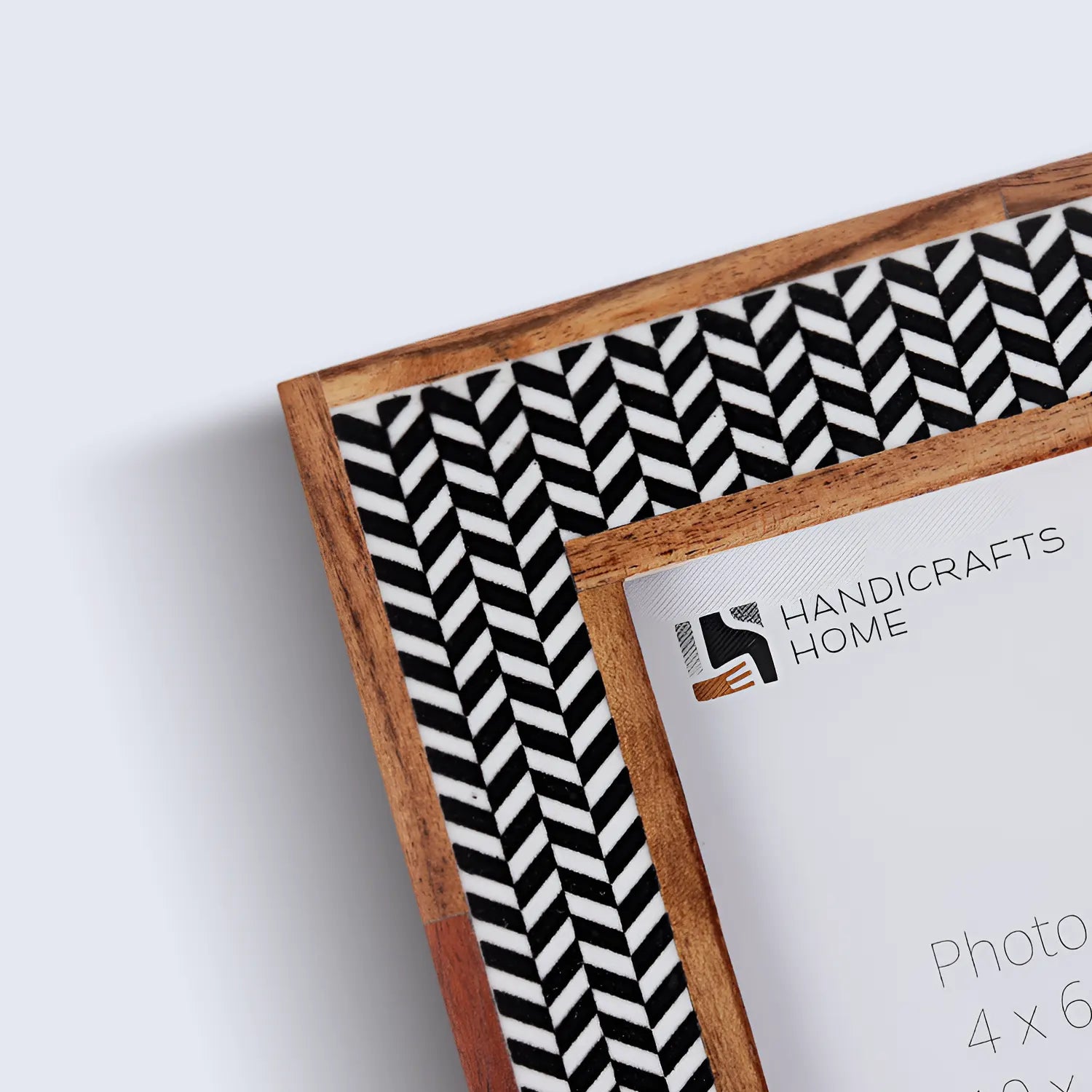 Chevron Herringbone Resin Inlay Picture Frame with Wooden Border, Black & White