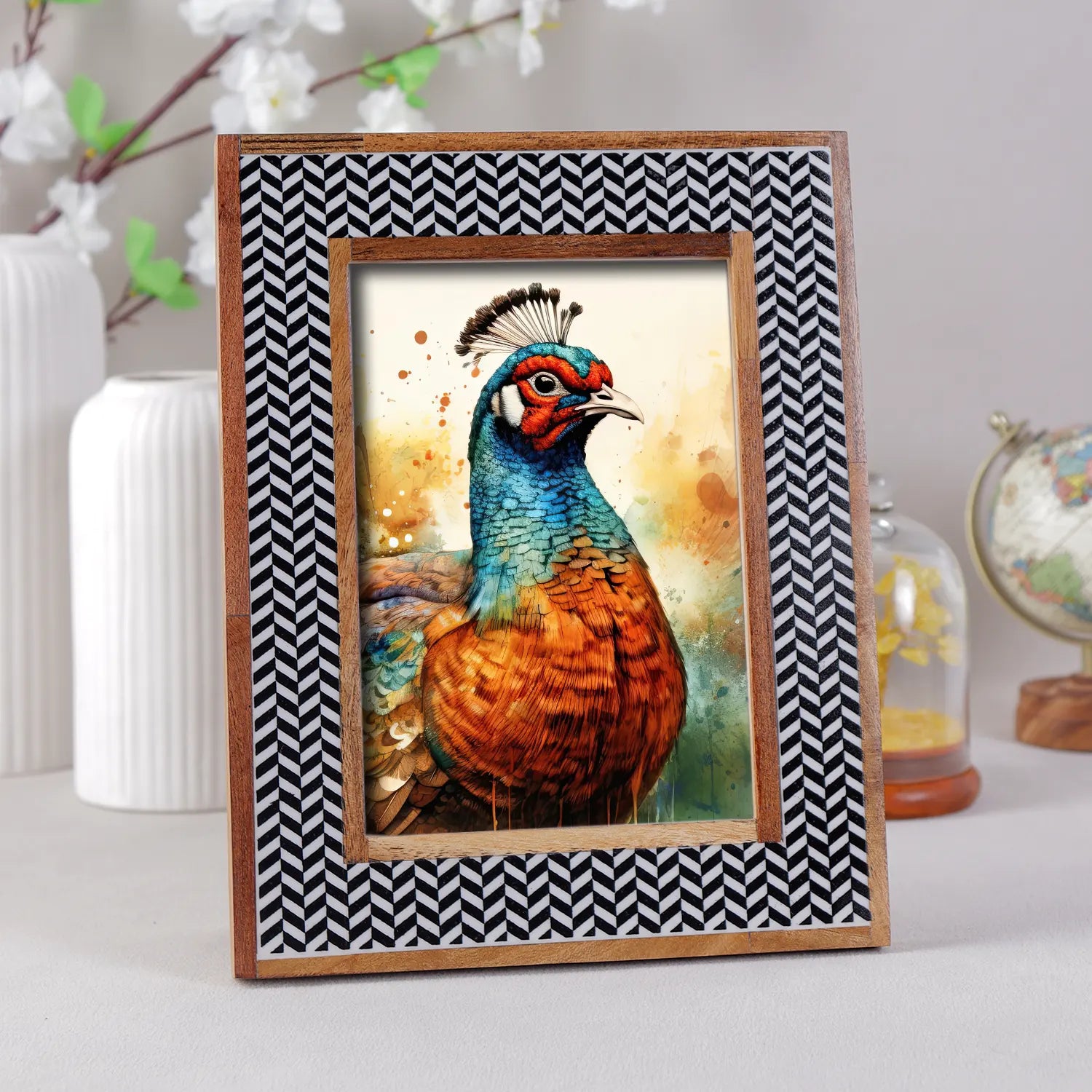 Striking Chevron Herringbone Detail: Transform any snapshot into a focal point with the bold, geometric chevron inlay. The high contrast resin pattern set within a natural wood border brings modern flair to boho, farmhouse, or minimalist interiors.