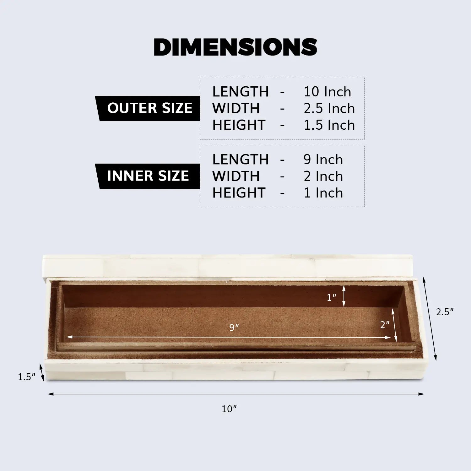 Dimensions: Inner - 9x1.5x1 in | Outer - 10x2.5x1.5 in