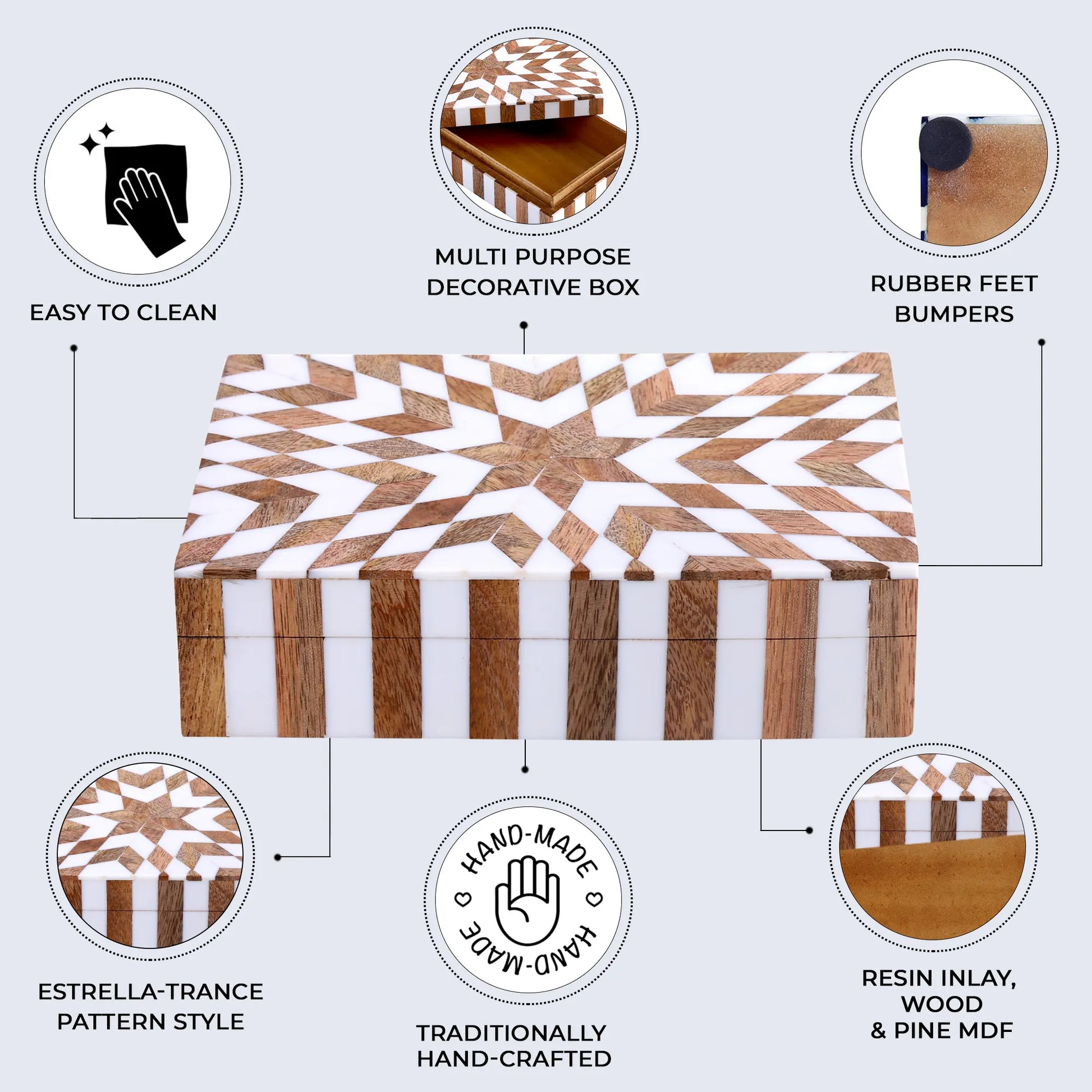 Decorative Storage Box Estrella Trance Resin Inlay in 8 x 5 x 2 inch