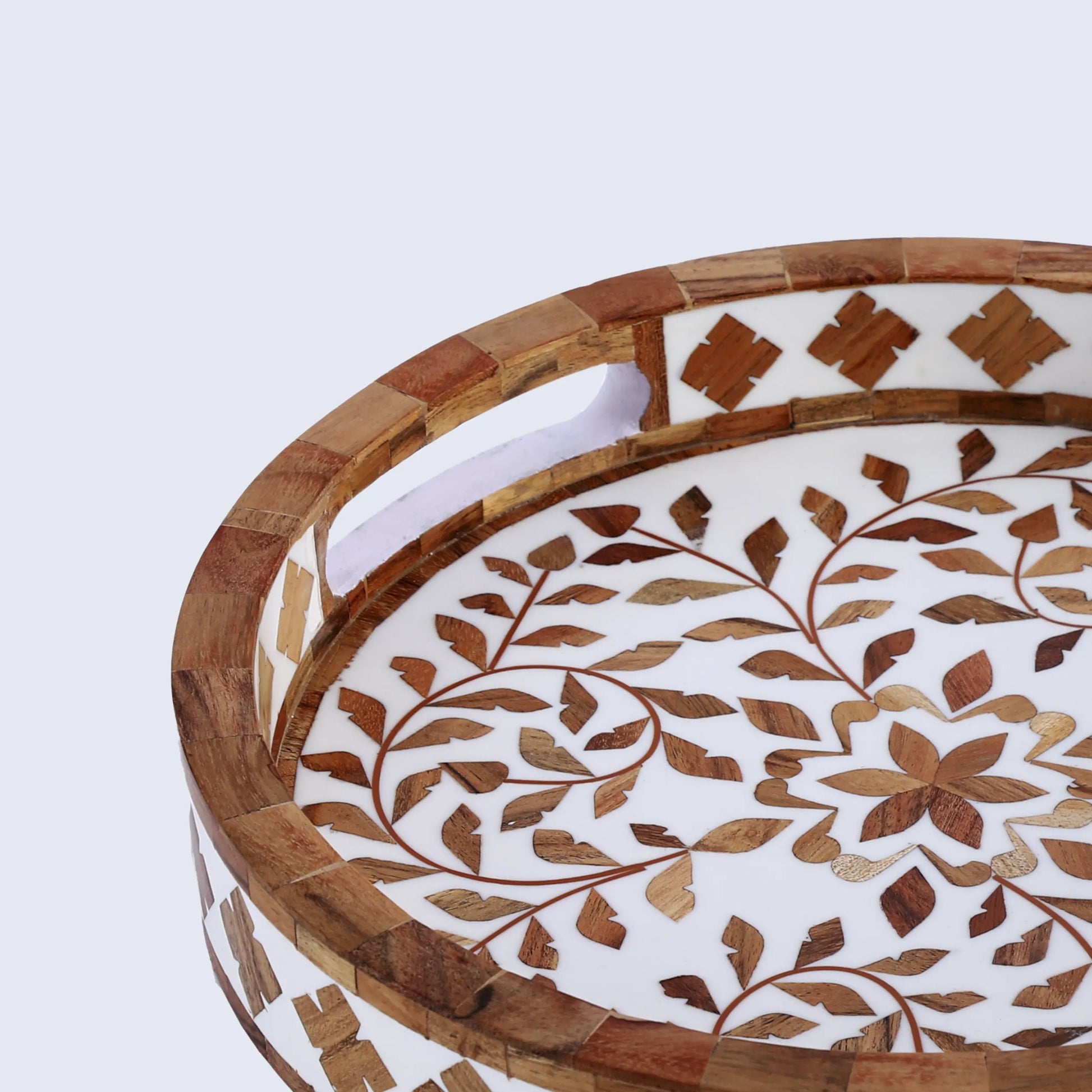 Decorative Tray Alhambra El Cerco Pattern Wood & Resin Inlay Collection in 12x12, Brown & White