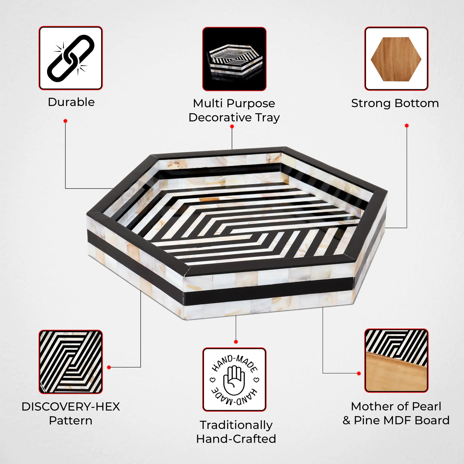 Decorative Tray Discovery Hex Pattern Mother of Pearl & Resin Inlay Collection in 12x12