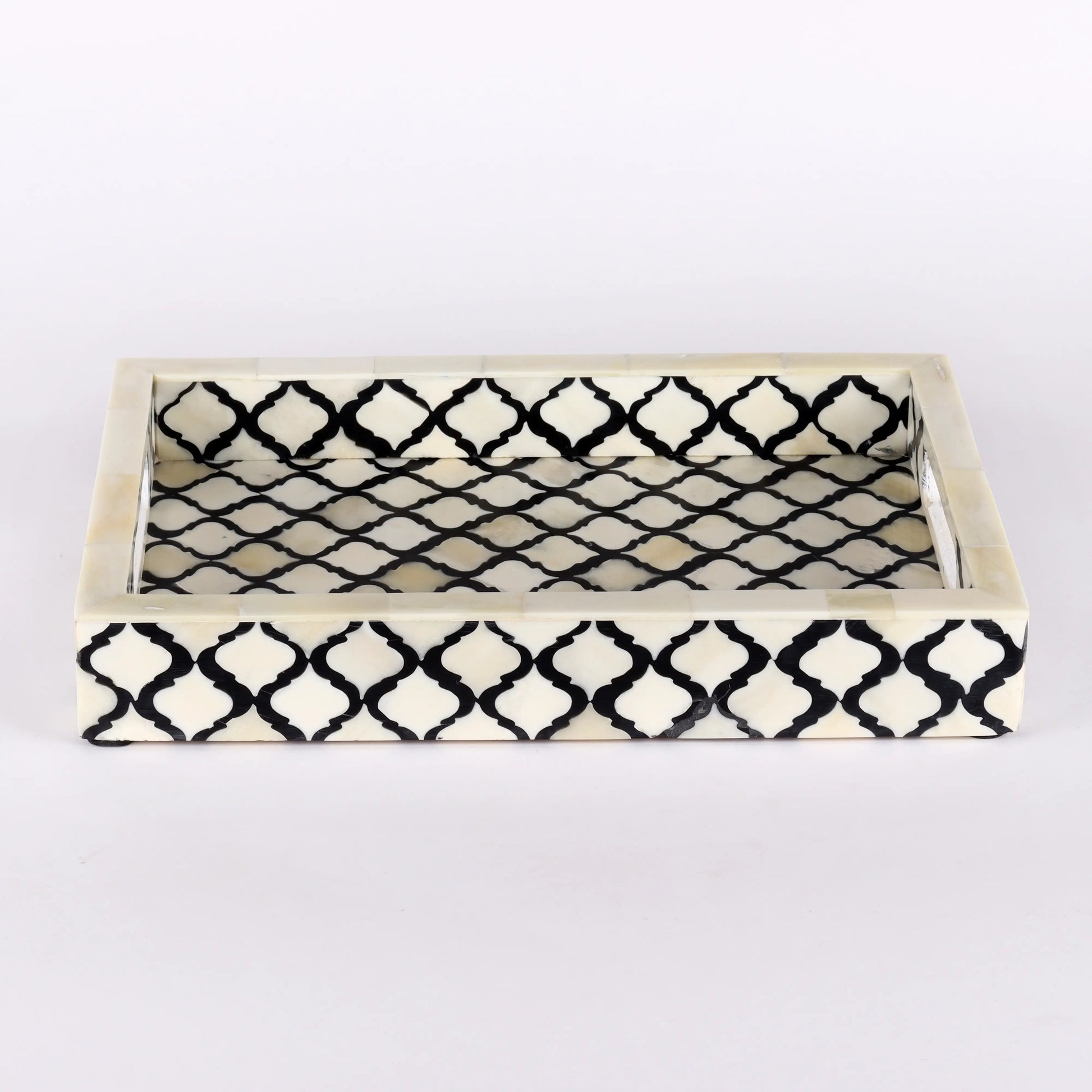 Decorative Tray Moroccan Pattern Bone & Resin Inlay Collection in 3 Sizes, Black & White
