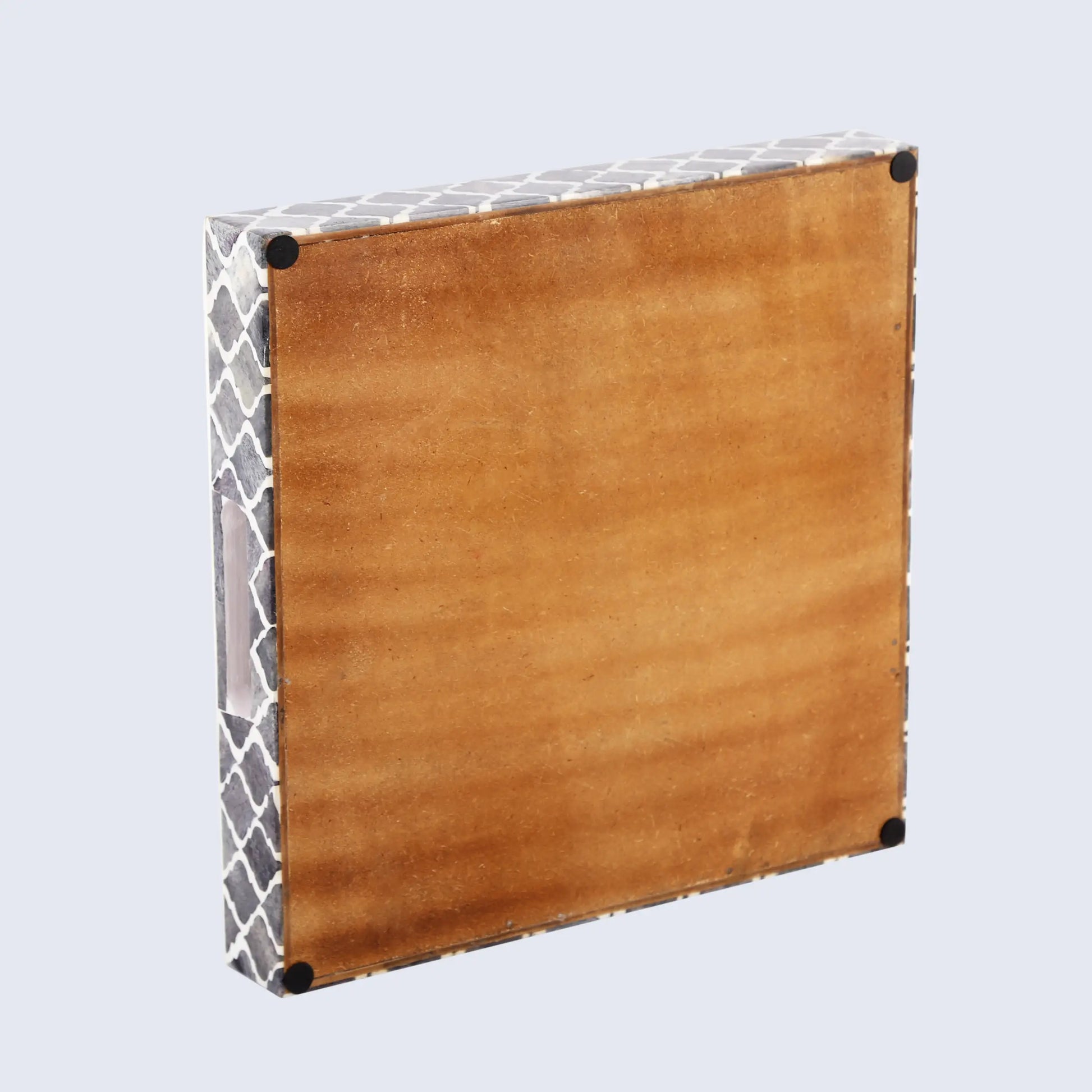 Decorative Tray Moroccan Pattern Bone & Resin Inlay Collection in 3 Sizes, Grey & White