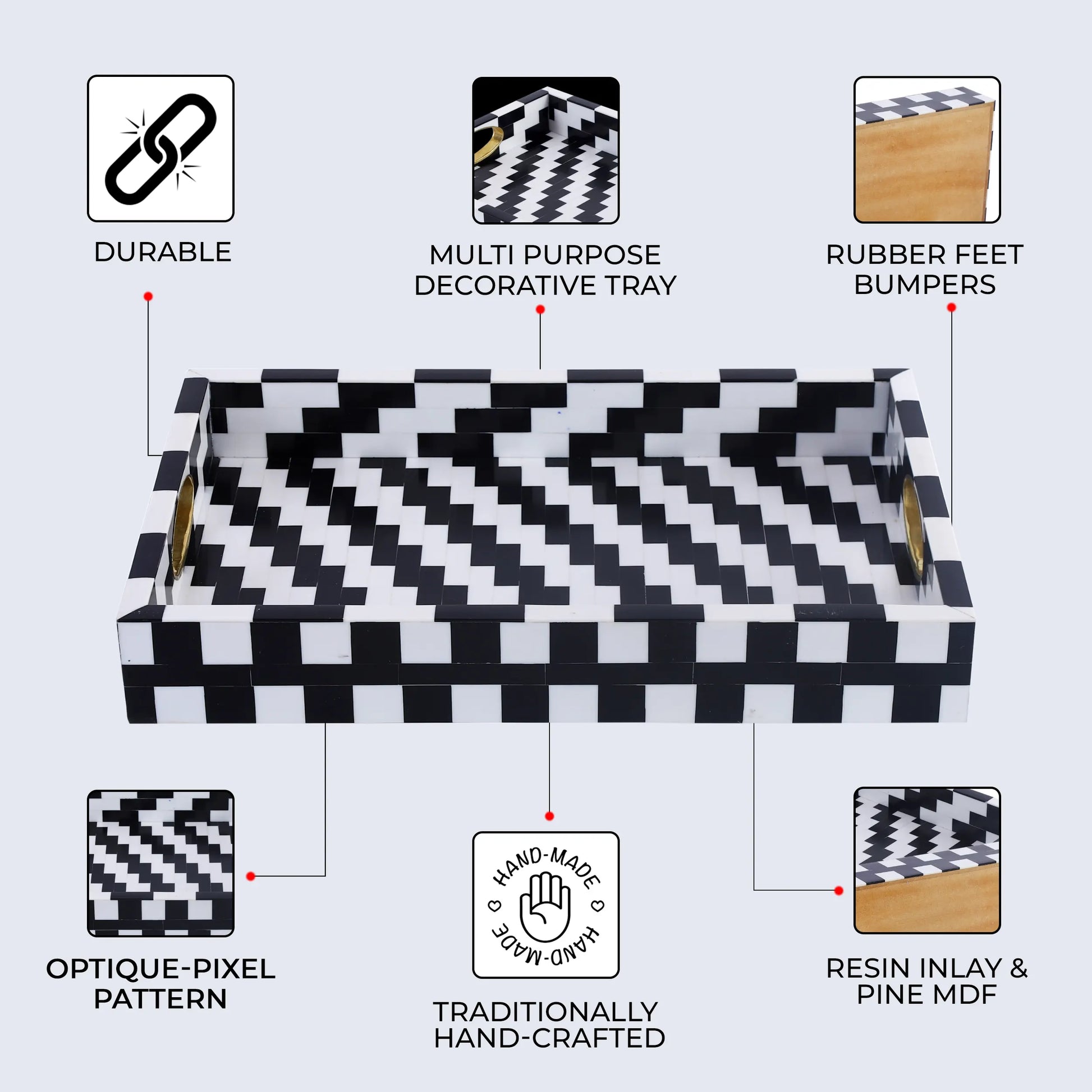 Decorative Tray Optique Pixel Pattern Resin Inlay Collection in 11x17