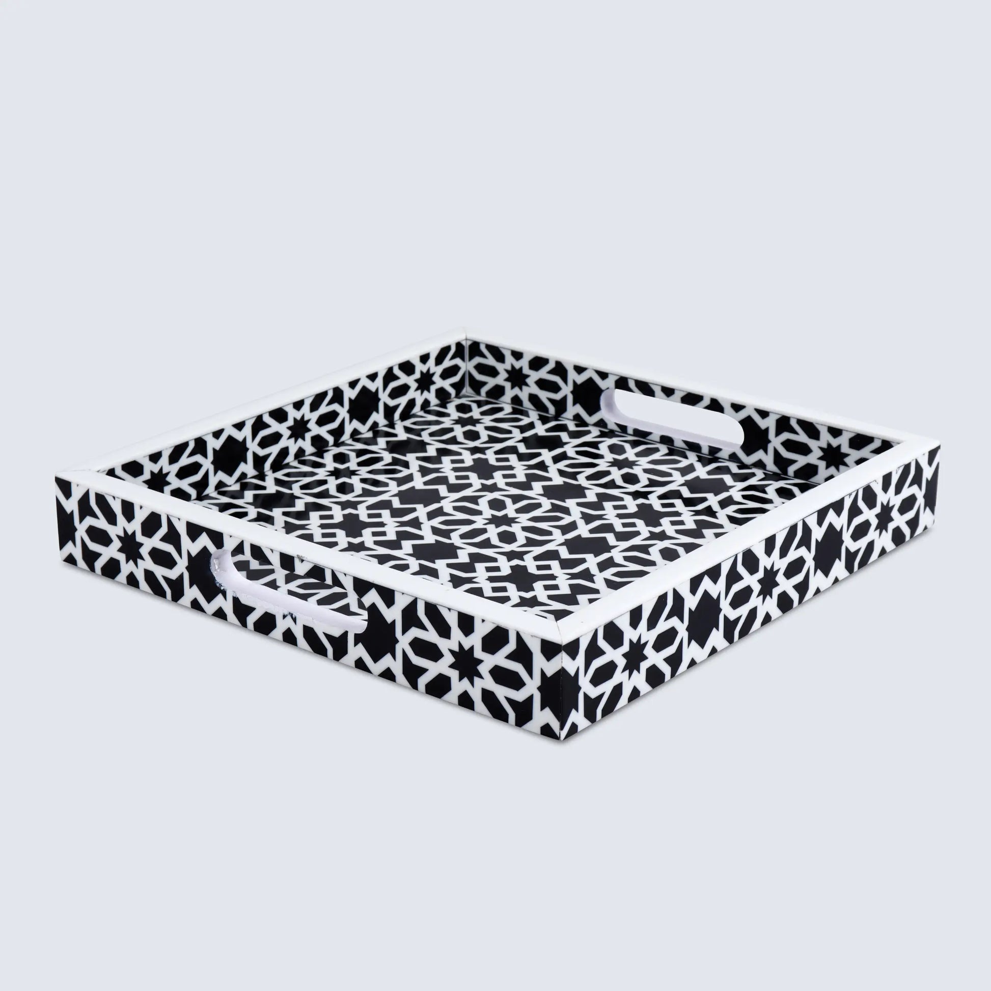 Decorative Tray Shiraj Pattern Resin Inlay Collection in 2 Sizes, Black & White