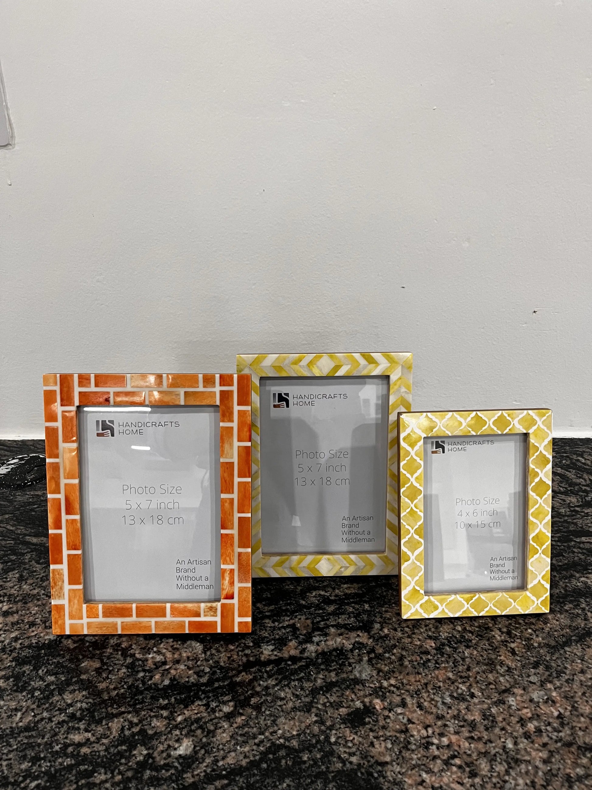 Add a touch of warmth to your decor with our Golden Amber Picture Frame set, featuring one 4x6 and two 5x7 frames in radiant hues—perfect for elevating any space.