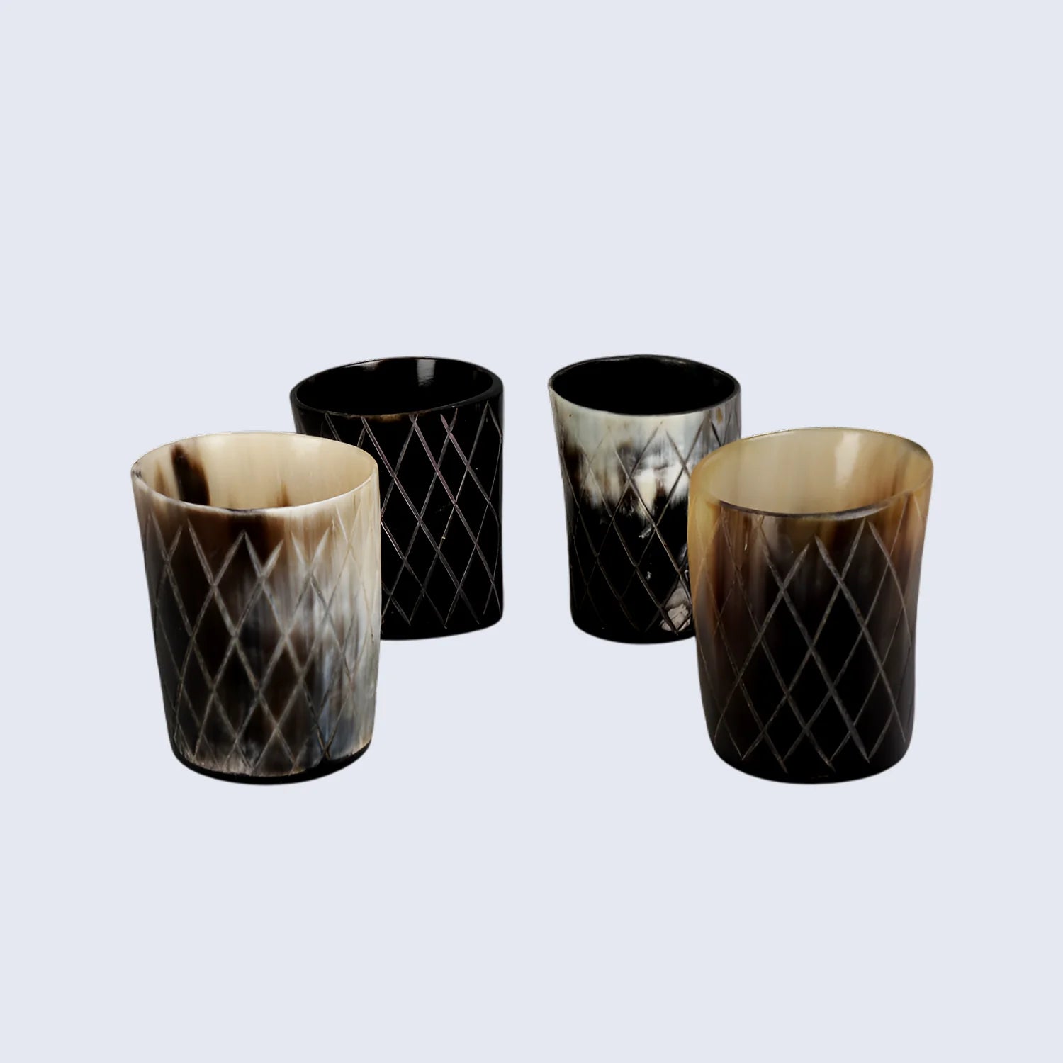 Introducing Our Crisscross Collection – Handmade Real Horn Shot Glasses in Crisscross Patterns!