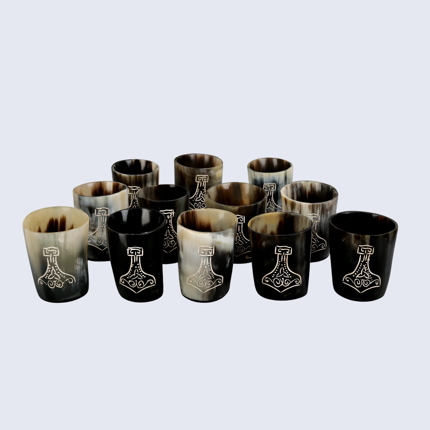 Introducing Our Nordic Hammer Collection – Handmade Real Horn Shot Glasses in Nordic Hammer Patterns!