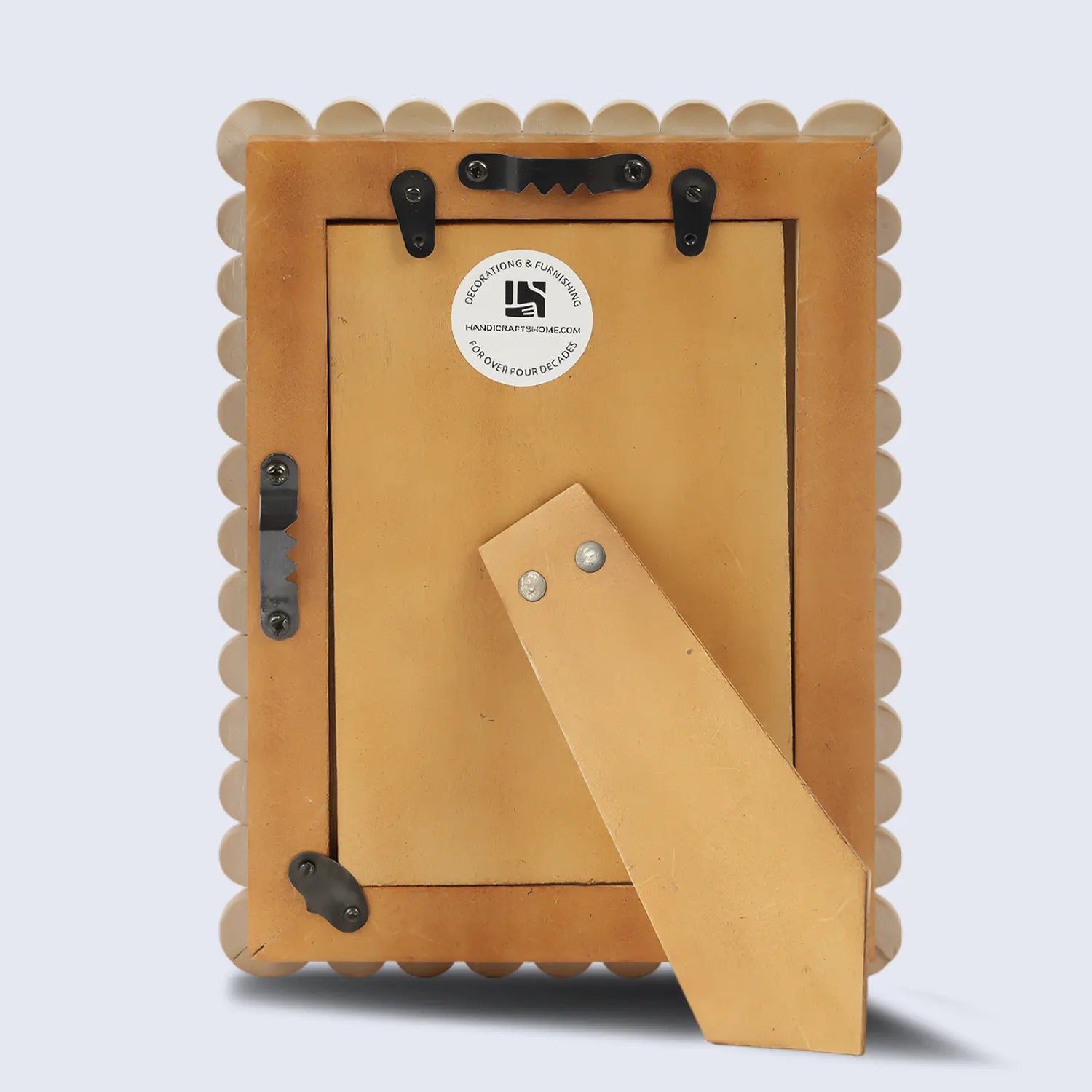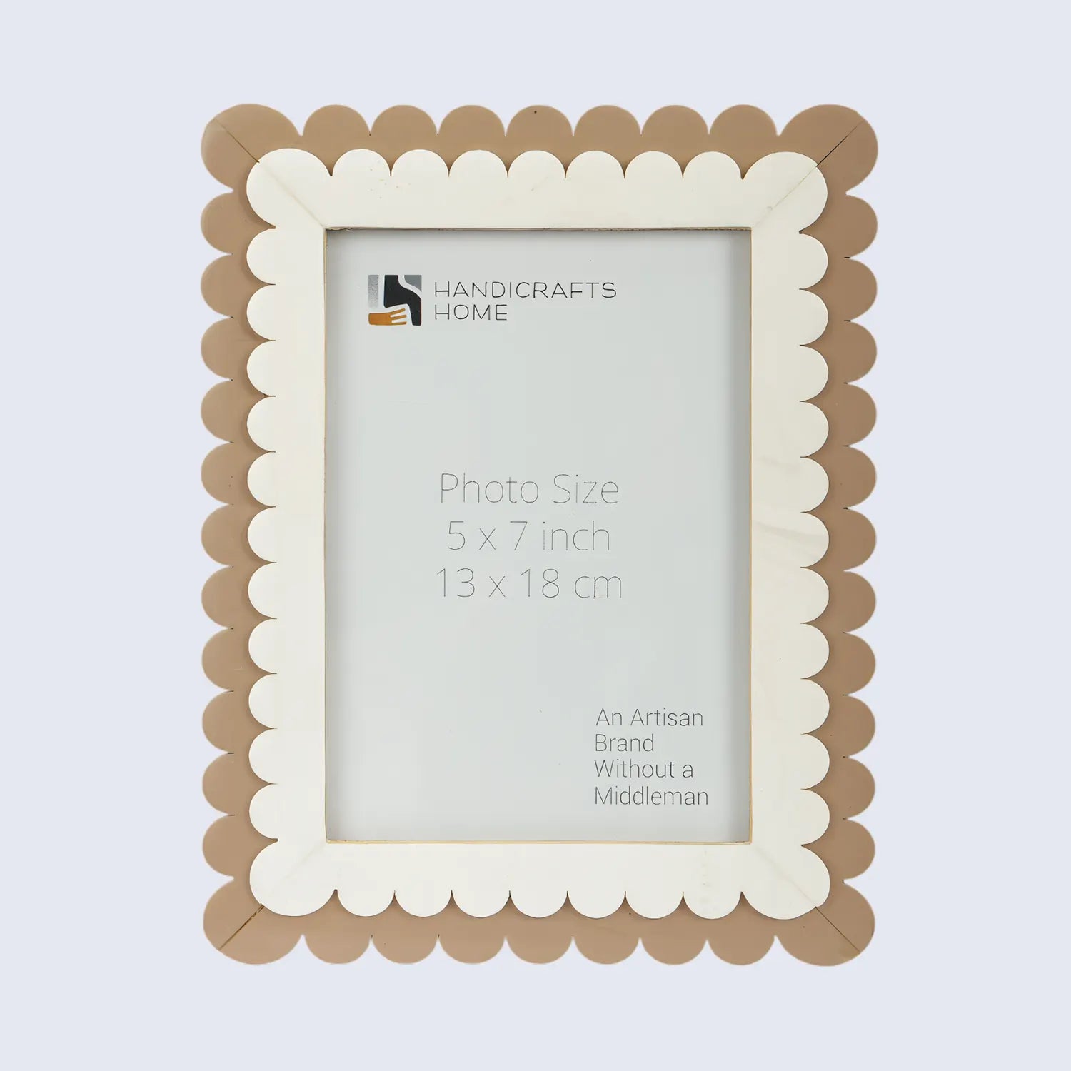 Add a touch of artisan charm to your space with the Handicrafts Home Picture Frames, handcrafted with precision and care. Featuring a distinctive scallop pattern made from brown and white resin inlay, this elegant frame is mounted on a durable Pine MDF base.