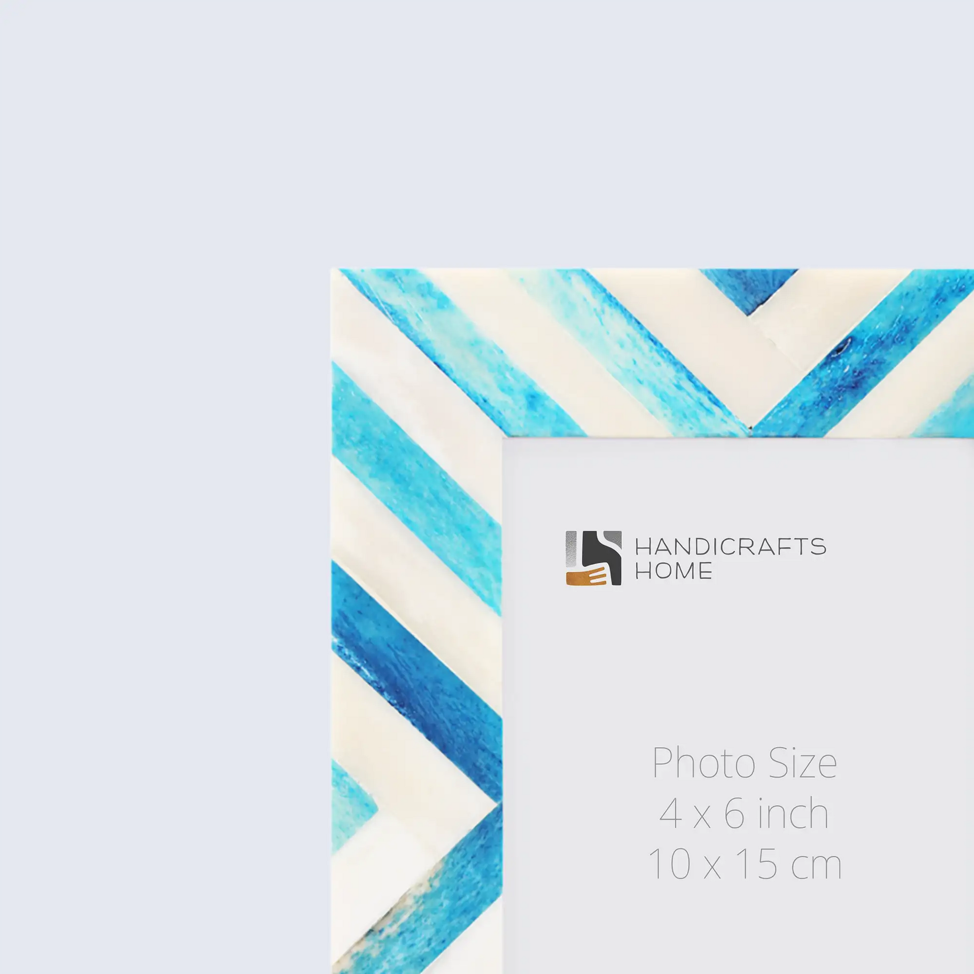 Picture Frames Chevron Pattern Bone Inlay Collection in 2 Sizes, Turquoise