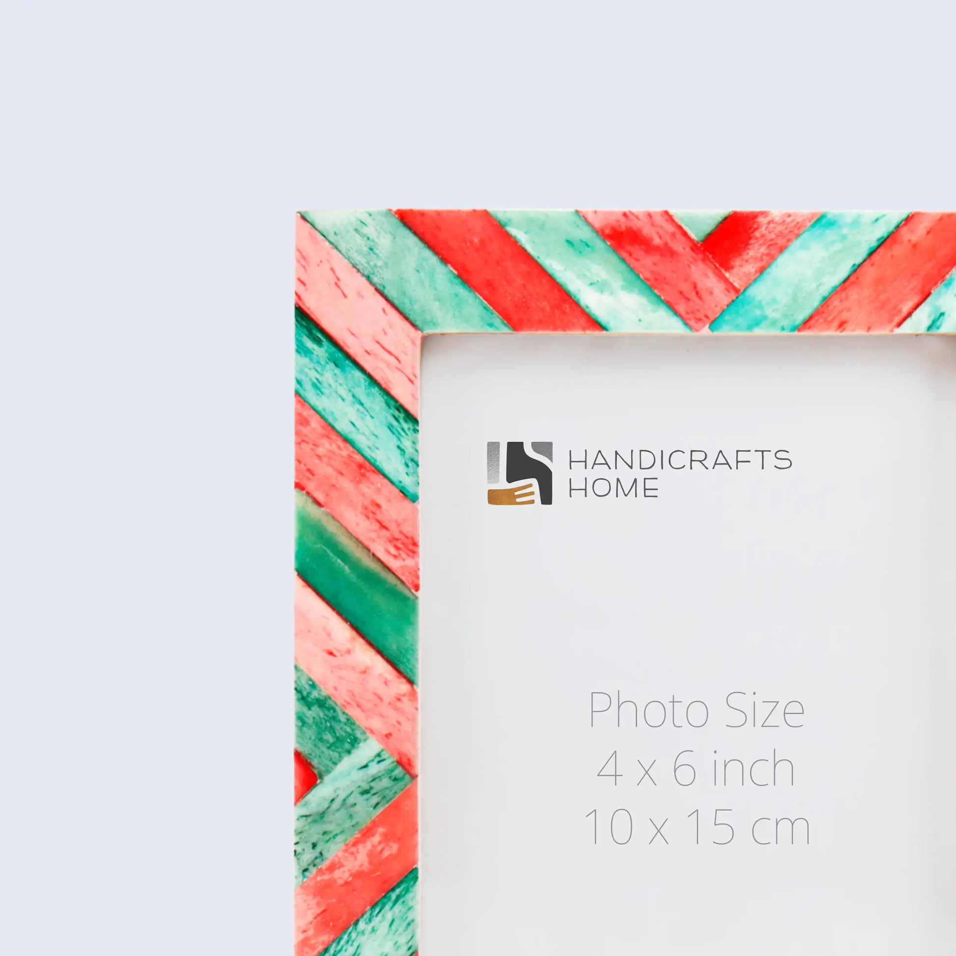 Picture Frames Chevron Pattern Bone Inlay Collection in 4 Sizes, Green & Red