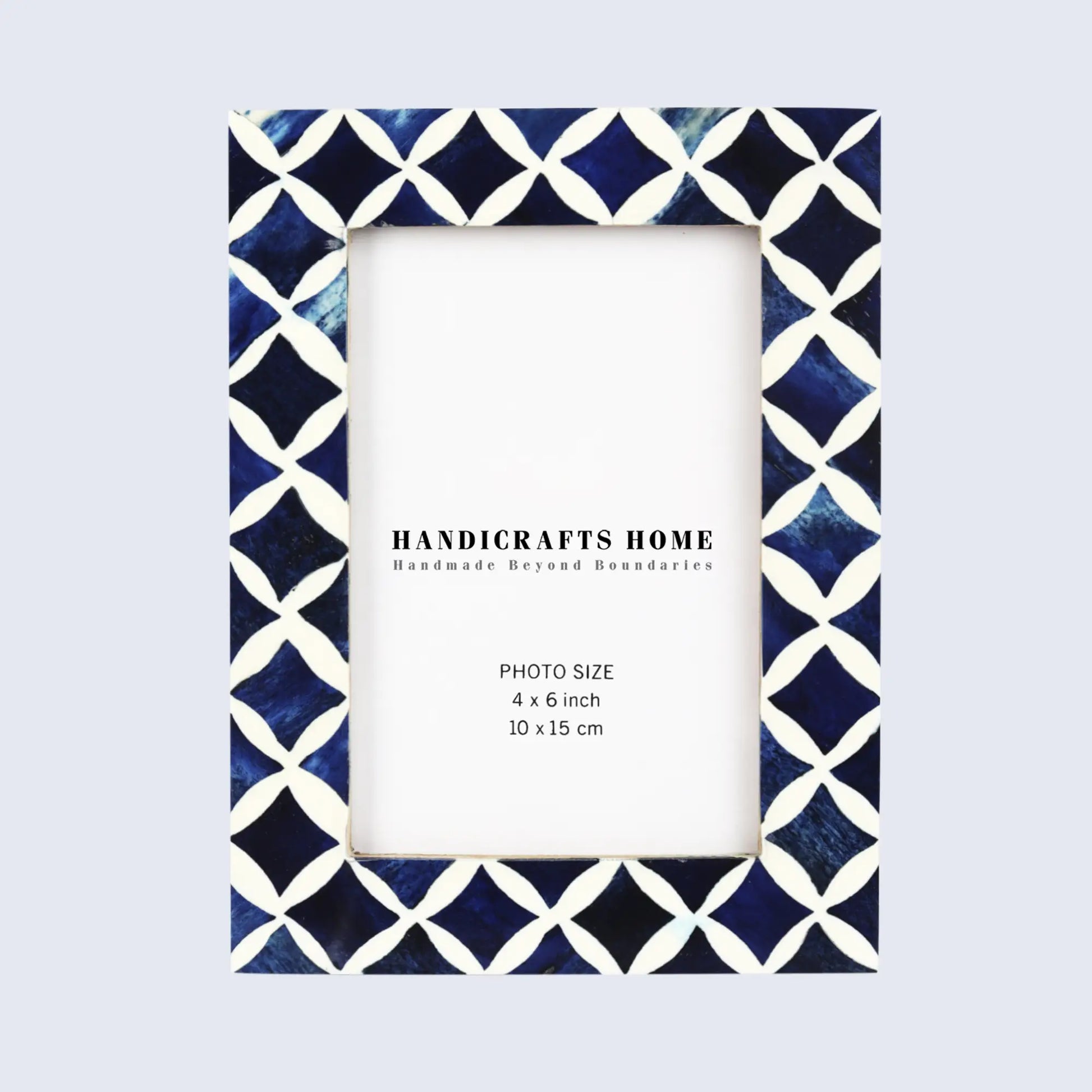 Picture Frames Indigo Mosaic Star Pattern Bone & Resin Inlay Collection, 4x6
