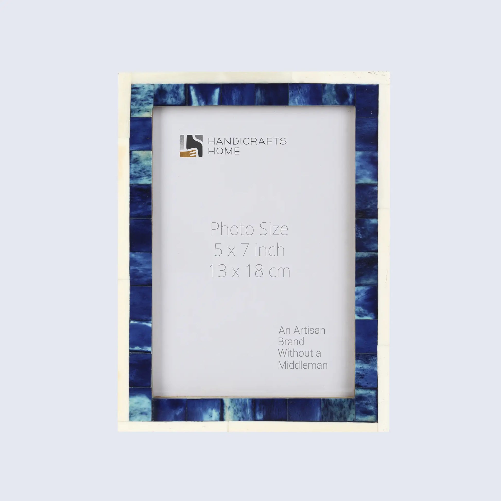 Picture Frames Mosaic Pattern Bone Inlay Collection in 3 Sizes, Blue