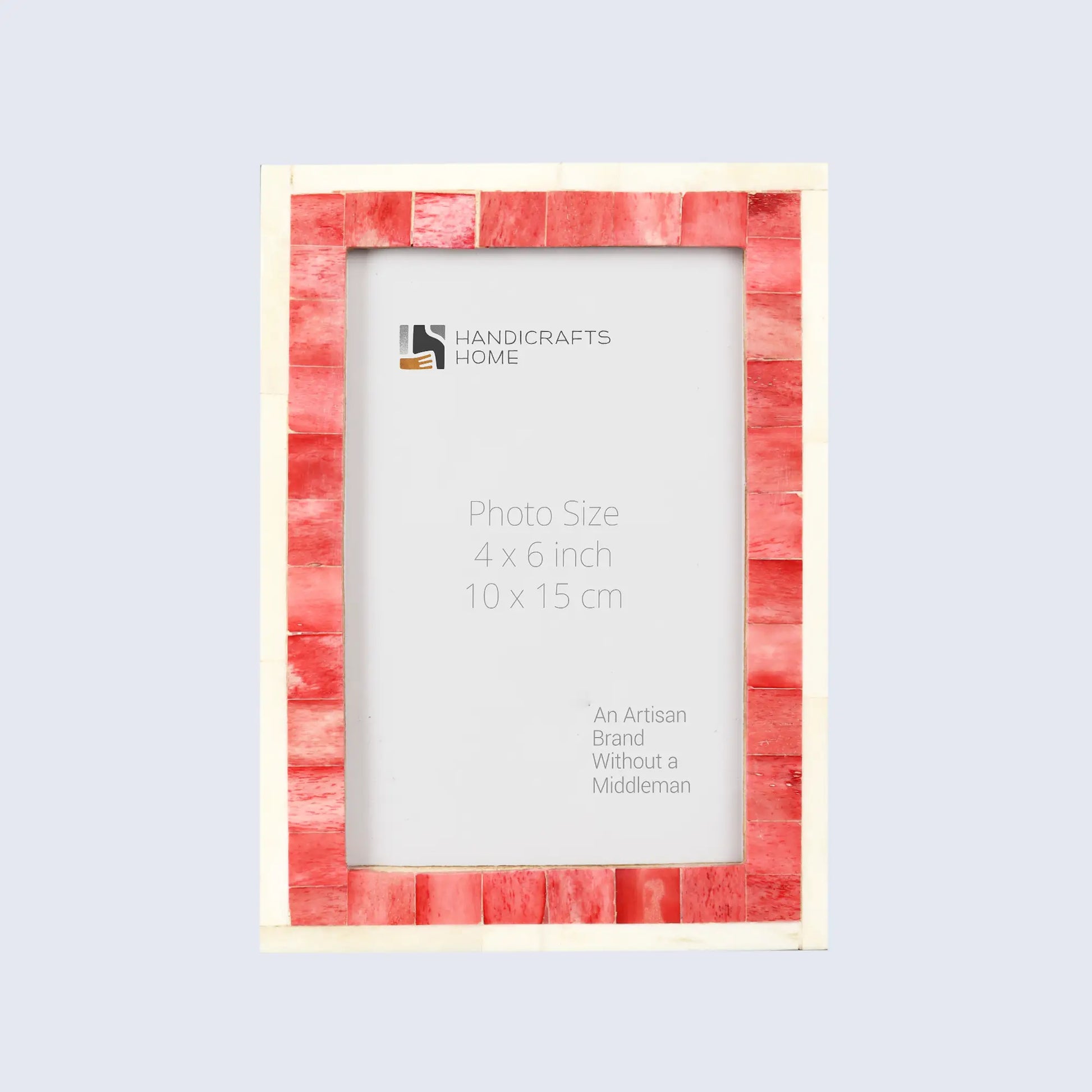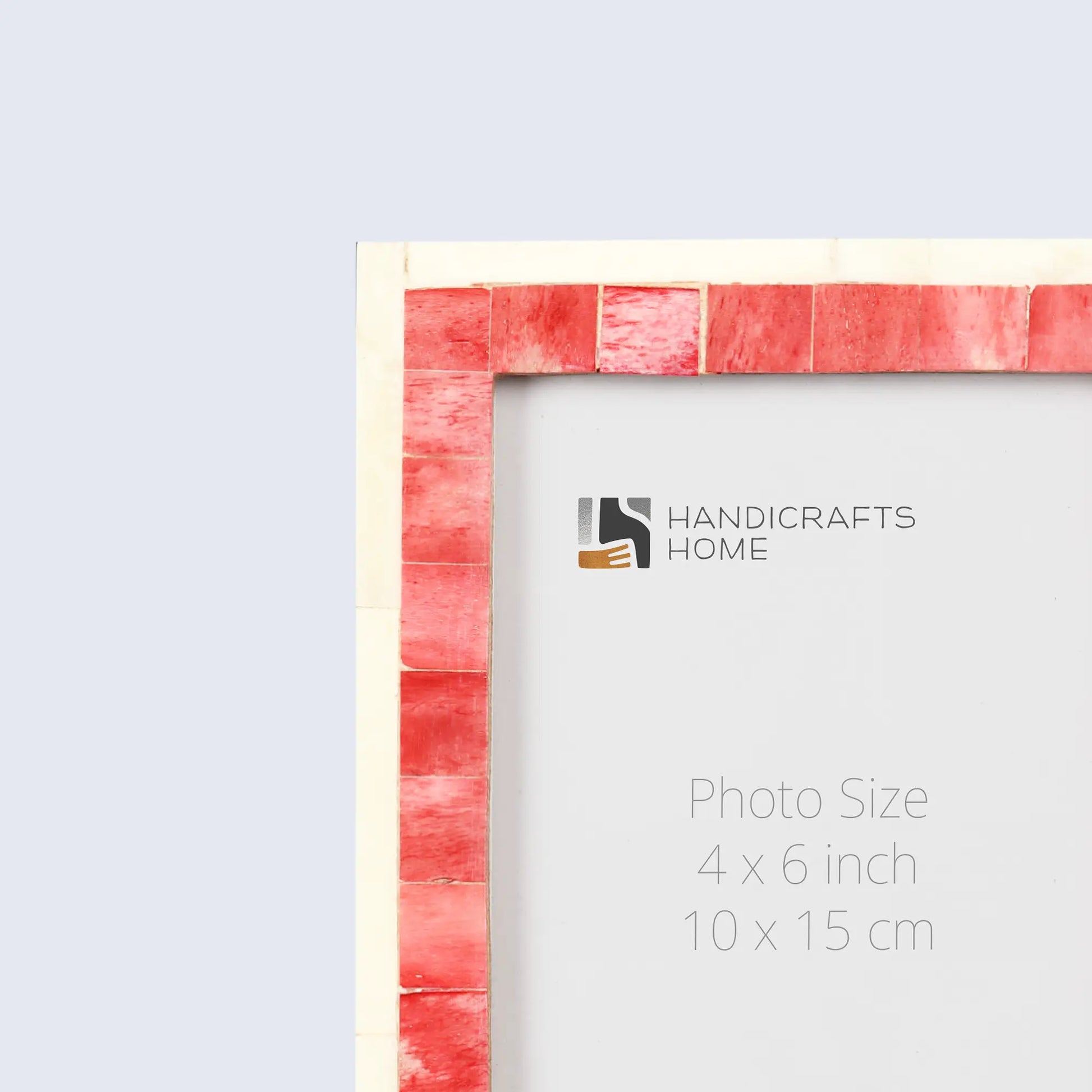 Picture Frames Mosaic Pattern Bone Inlay Collection in 3 Sizes, Red