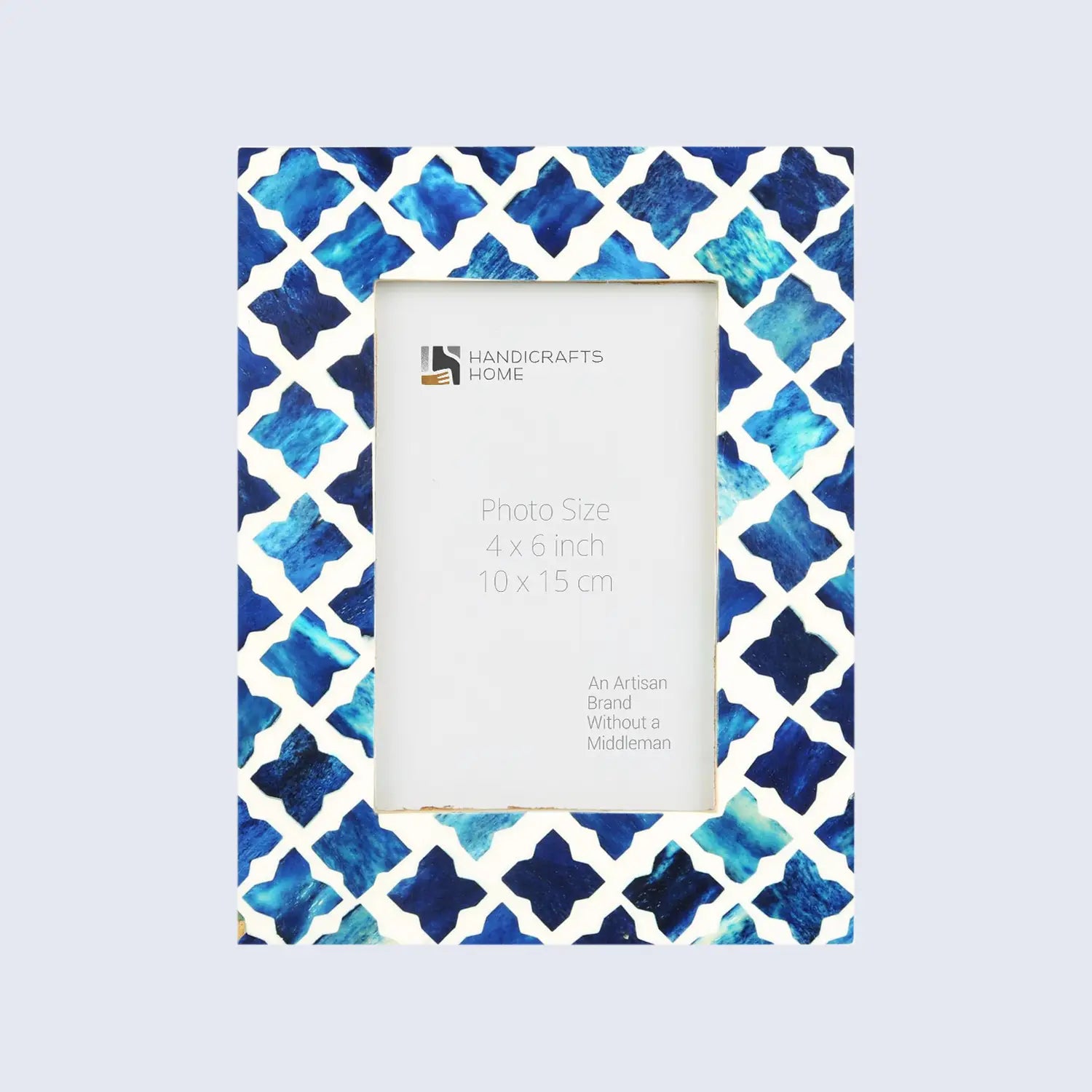 Picture Frames Mosaic Quatrefoil Pattern Bone & Resin Inlay Collection in 3 colors, 4x6