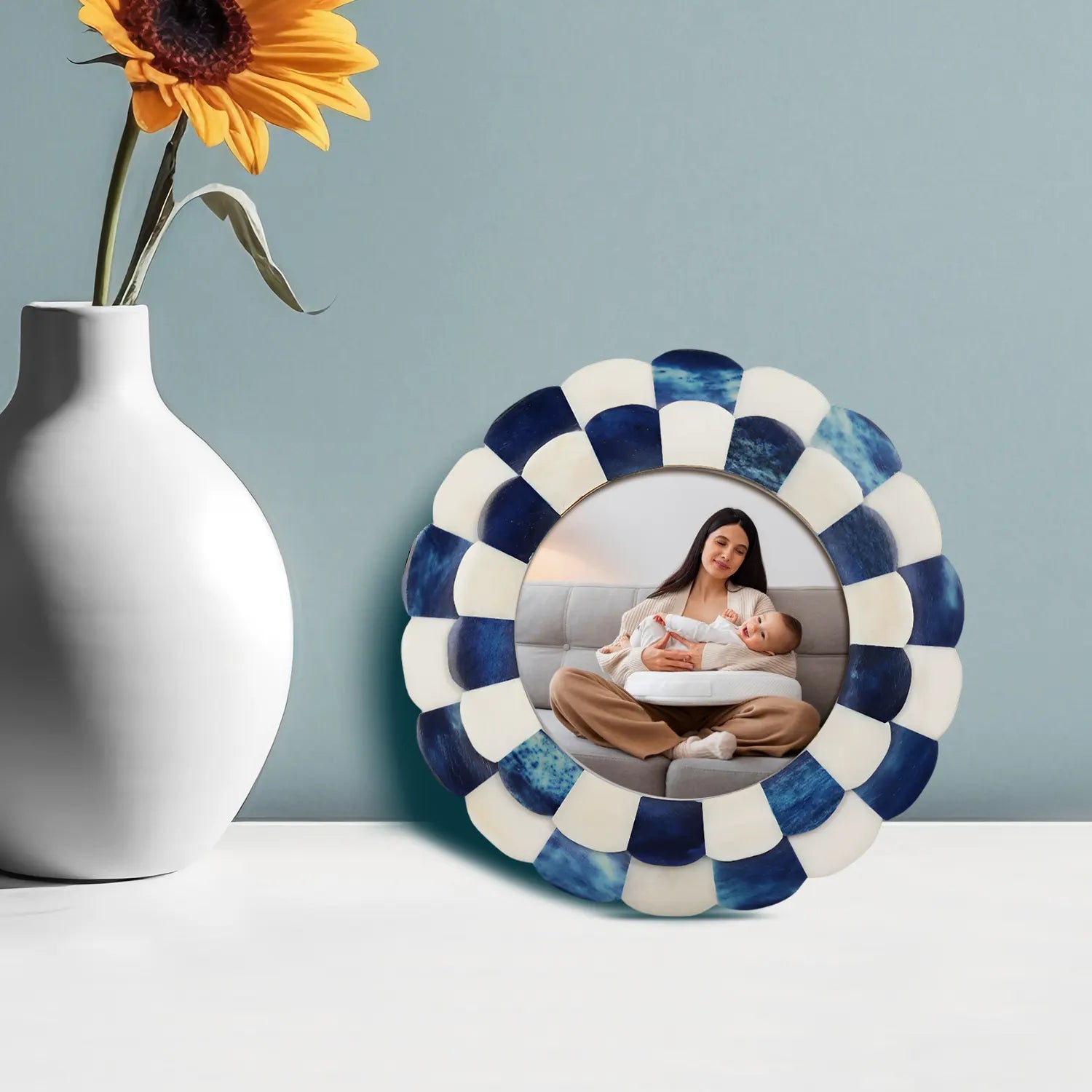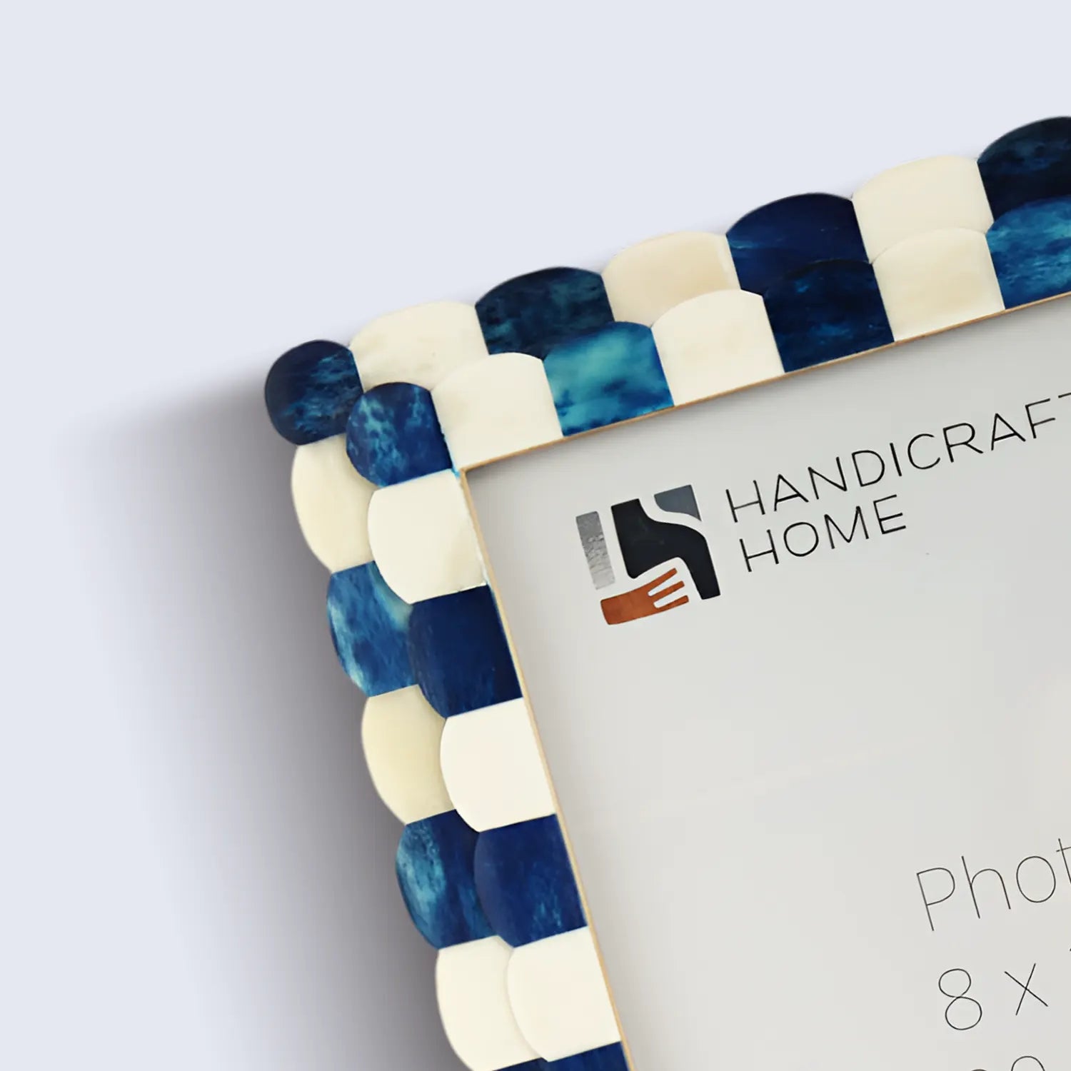 Picture Frames Scalloped Pattern Bone Inlay Collection in 4 sizes, Blue