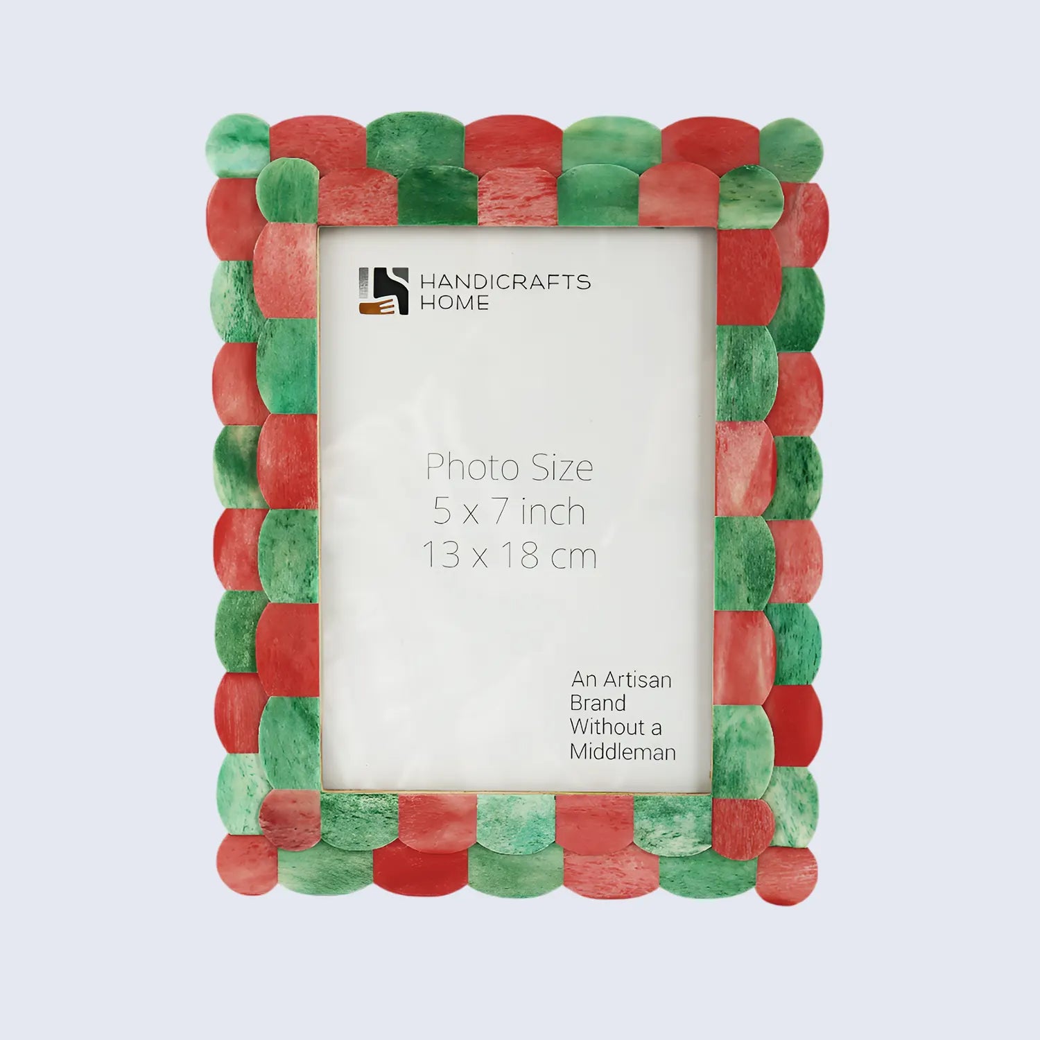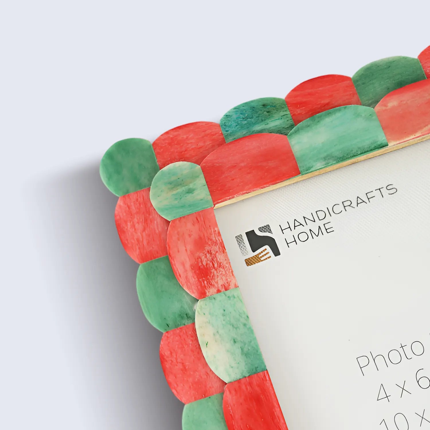 Picture Frames Scalloped Pattern Bone Inlay Collection in 4 sizes, Green & Red