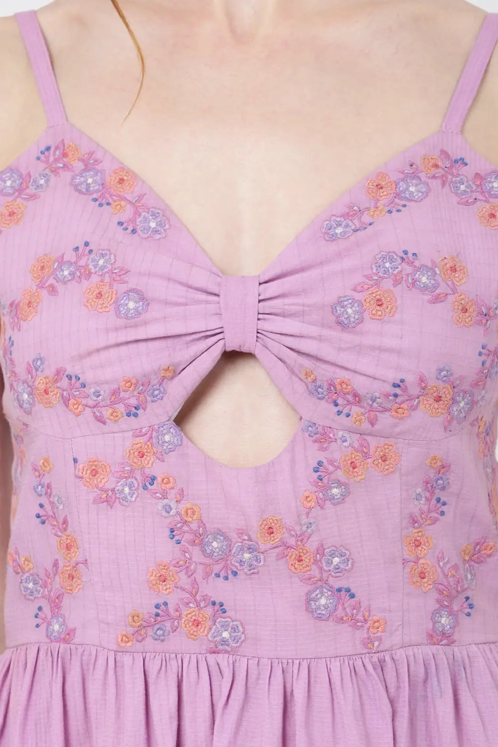 Elevate your wardrobe with our handcrafted Midi Corset Dress in lilac, crafted from premium dobby cotton and adorned with intricate embroidery. This dress combines a sweetheart neckline and sleeveless design to highlight your elegance, featuring a hidden back zipper and hourglass detailing for a flawless silhouette.