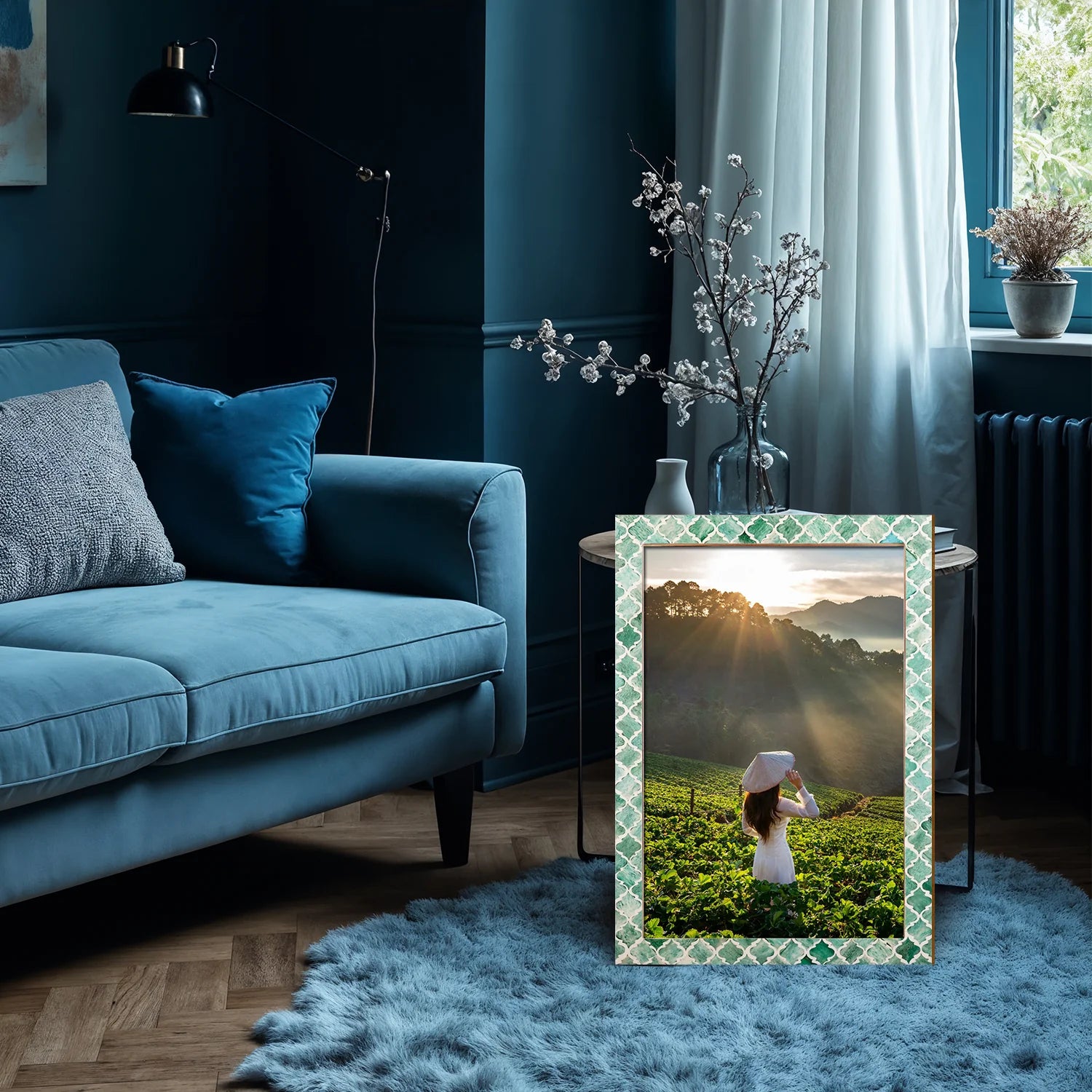Poster Picture Frame Moroccan Bone & Resin Inlay Collection in 5 Sizes, Green