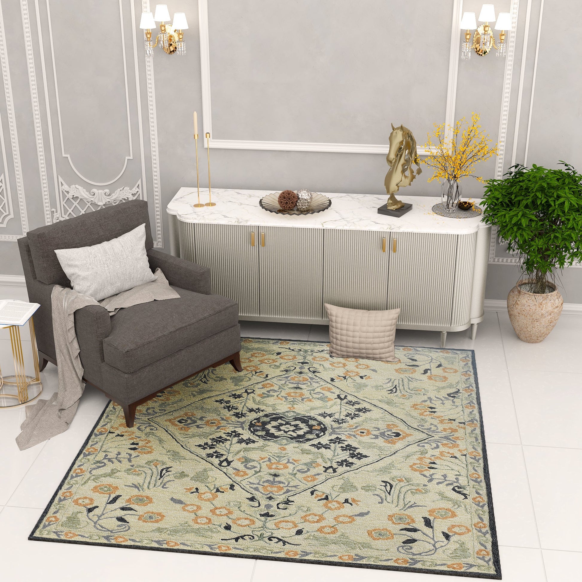 Premium Hand-Tufted Rug Made of 100% Wool - Anglian Court - 6x6 Feet