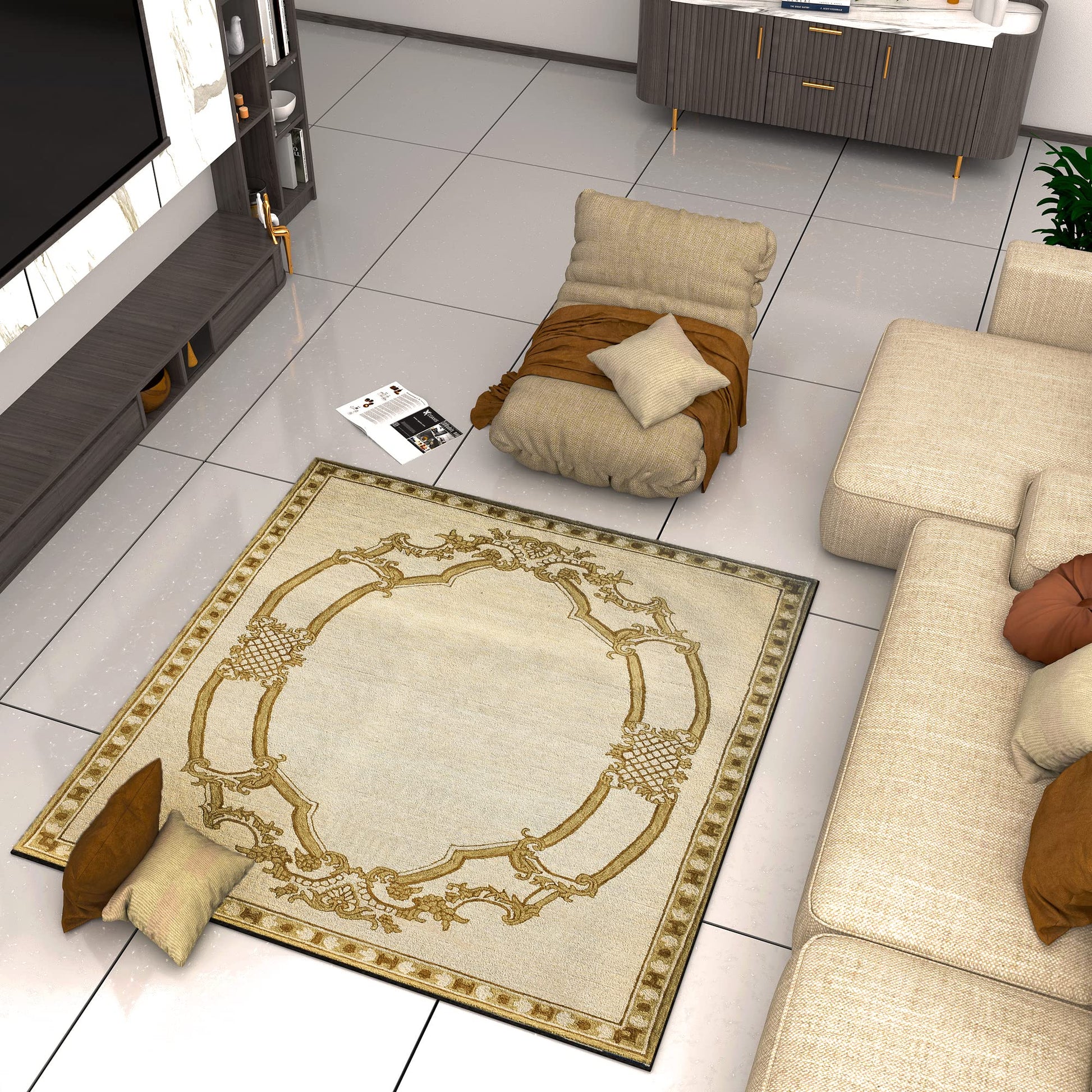 Premium Hand-Tufted Rug Made of 100% Wool - Augustan Gold - 6x6 Feet