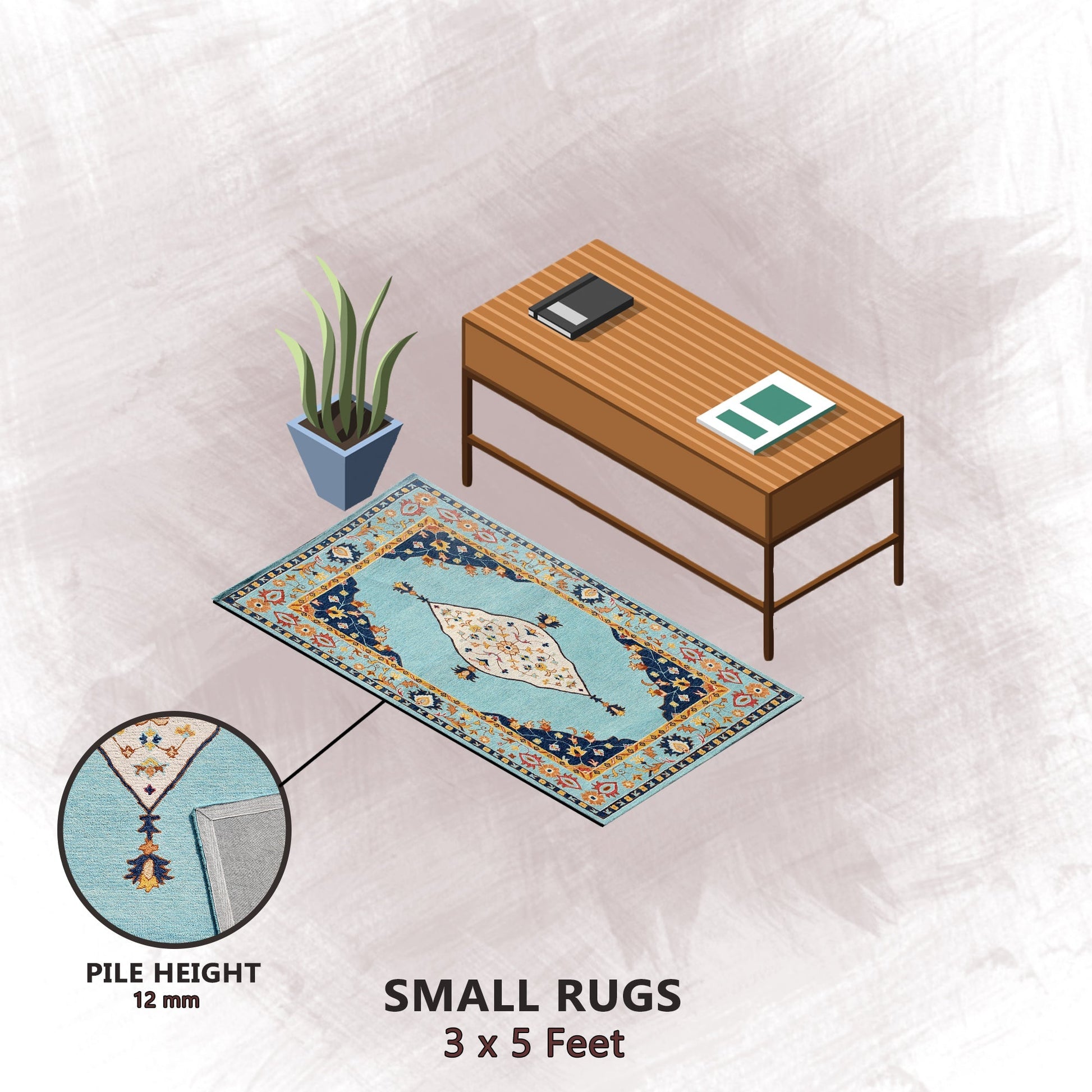 Premium Hand-Tufted Rug Made of 100% Wool - Aydin Sky - 3x5 Feet