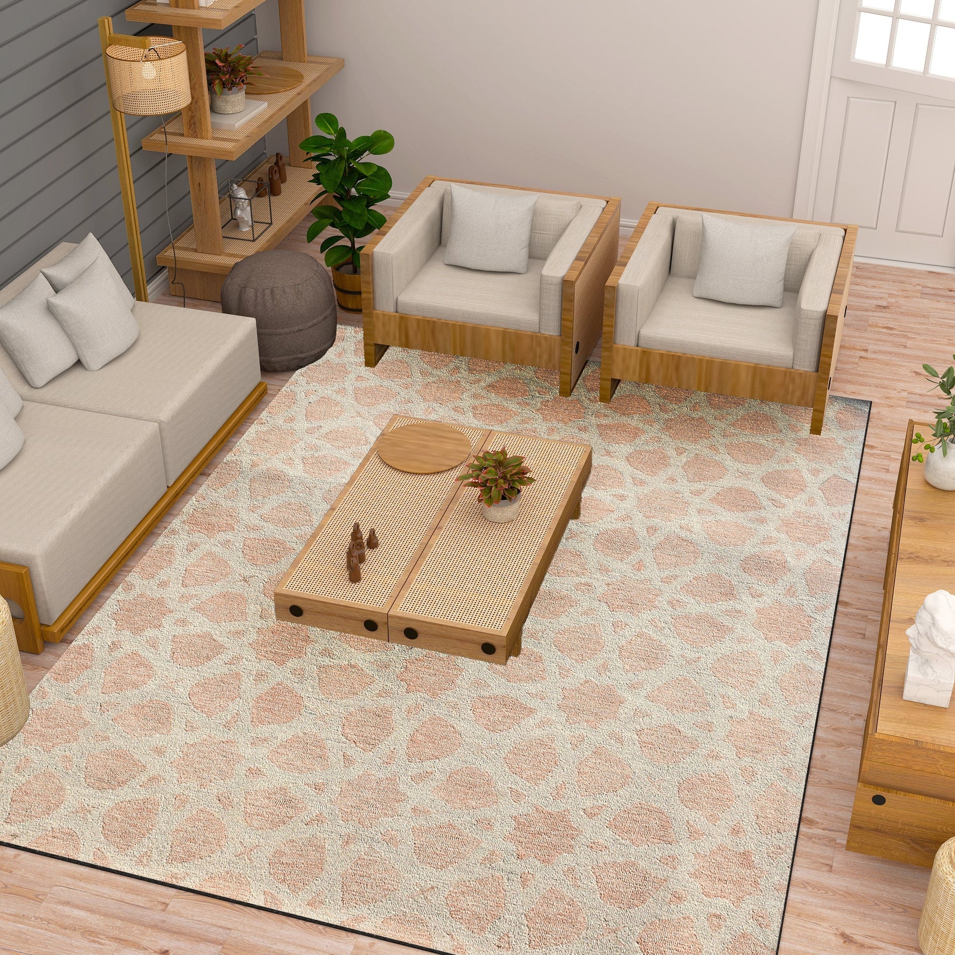Premium Hand-Tufted Rug Made of 100% Wool - Blush Zellig - 9x12 Feet