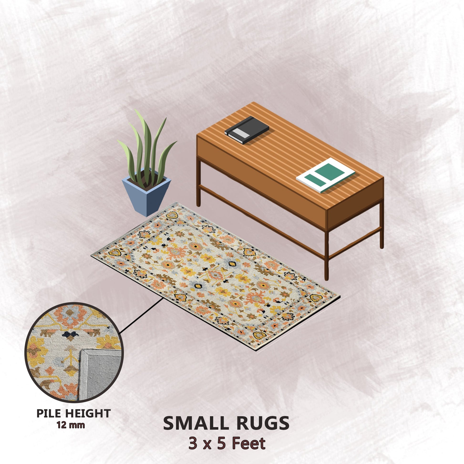 Premium Hand-Tufted Rug Made of 100% Wool - Flora Meadow - 3x5 Feet