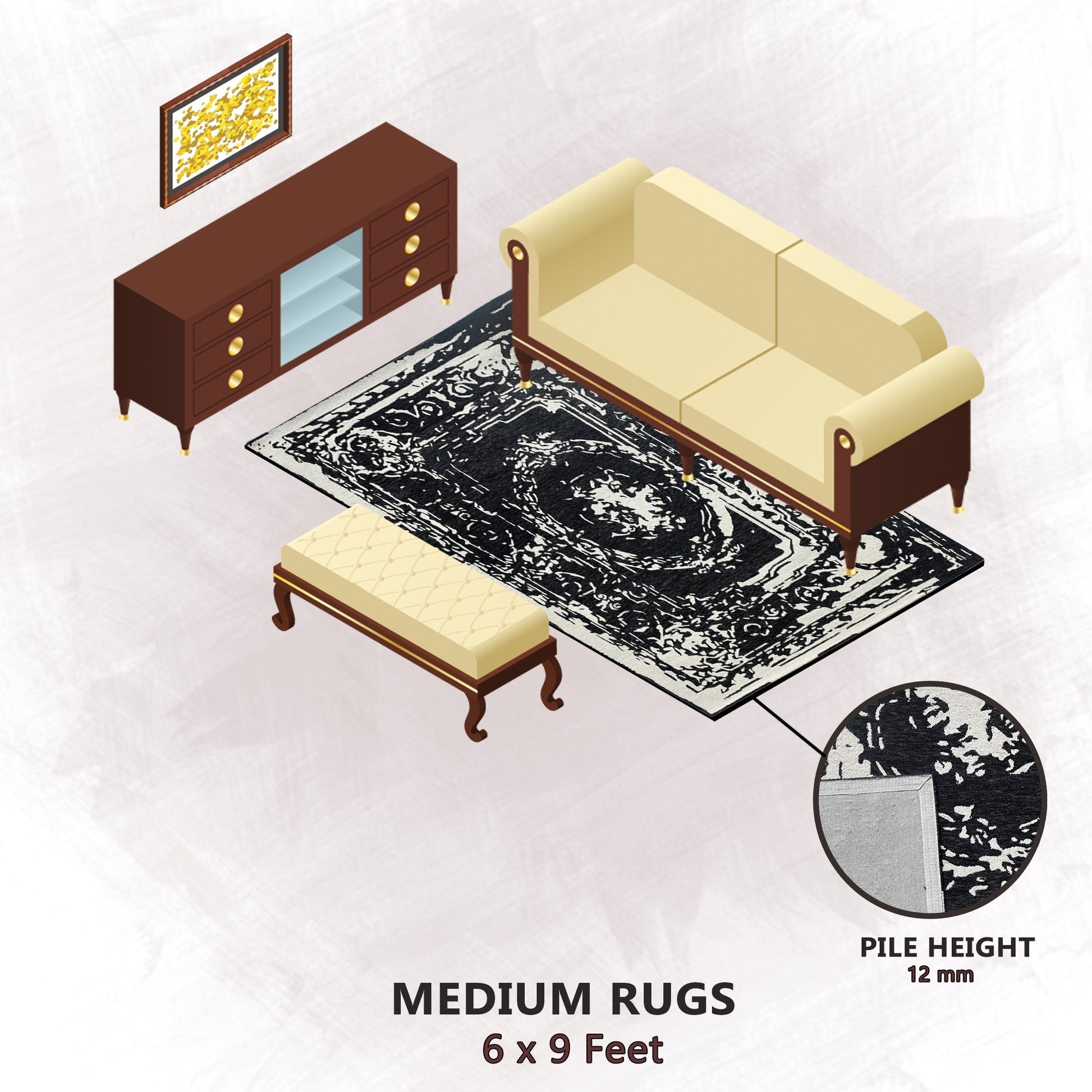 - Rectangular Area Rugs: 3X5, 4X6, 5X8, 6X9, 8X10 & 9X12