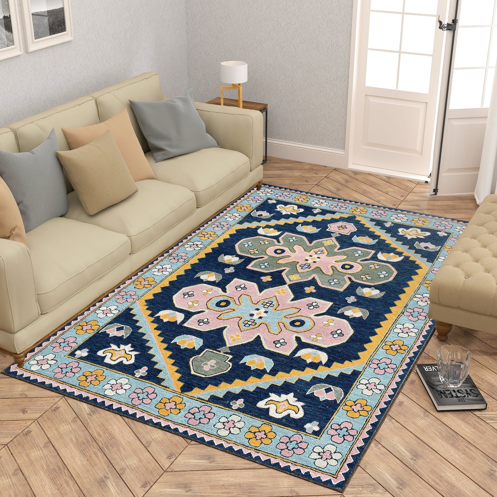 Premium Hand-Tufted Rug Made of 100% Wool - Lotus Bloom - 5x8 Feet