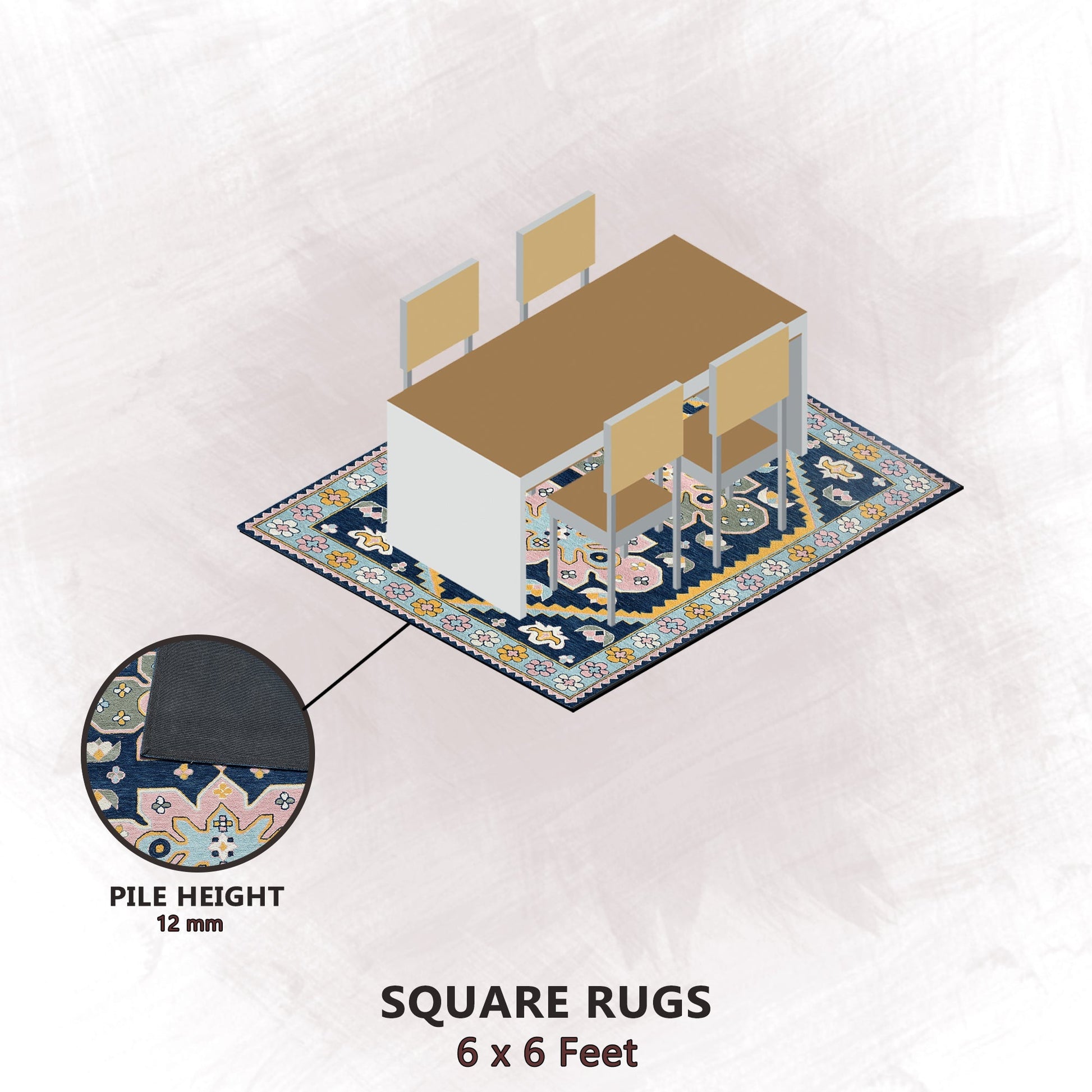 Premium Hand-Tufted Rug Made of 100% Wool - Lotus Bloom - 6x6 Feet