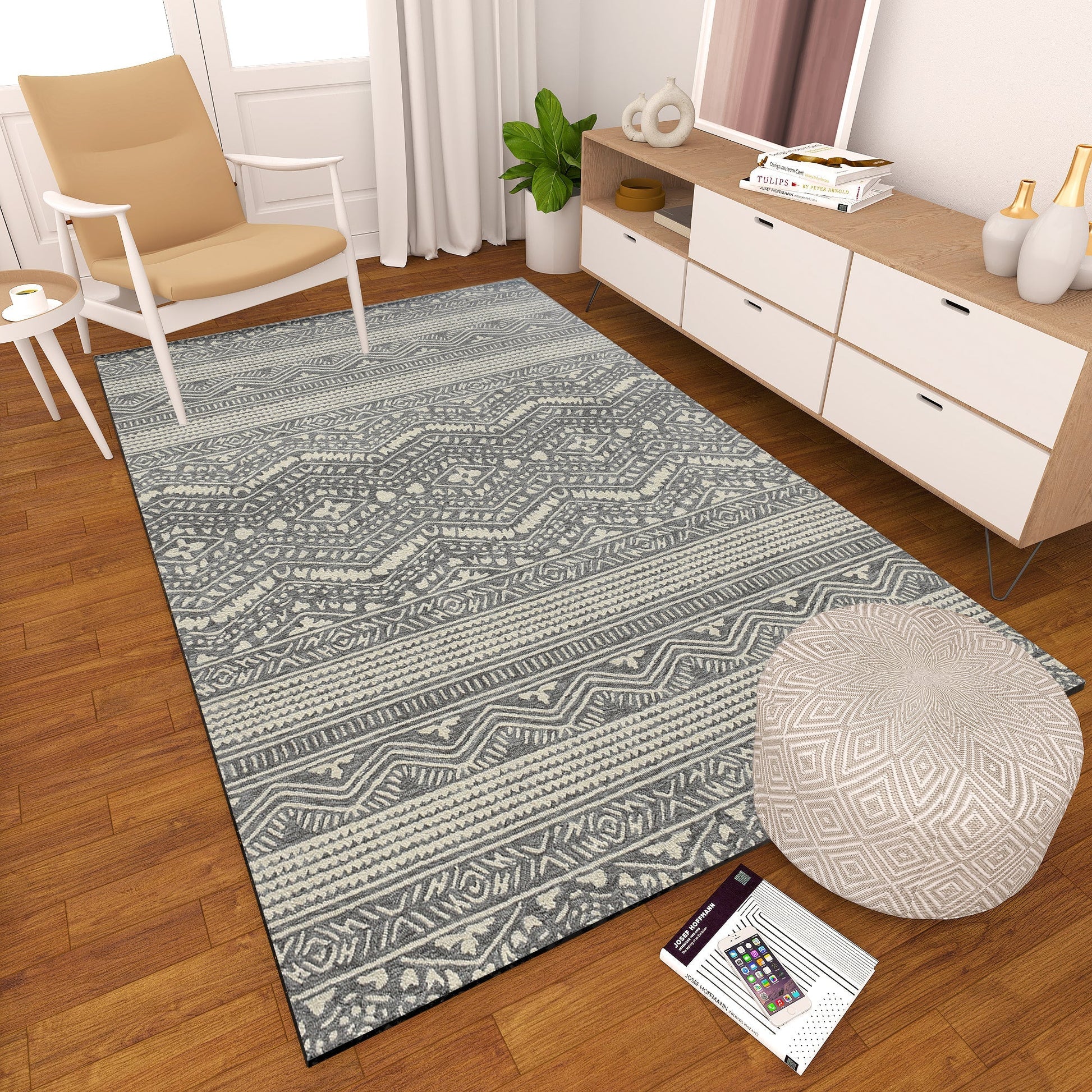 Premium Hand-Tufted Rug Made of 100% Wool - Midnight Mist - 5x8 Feet