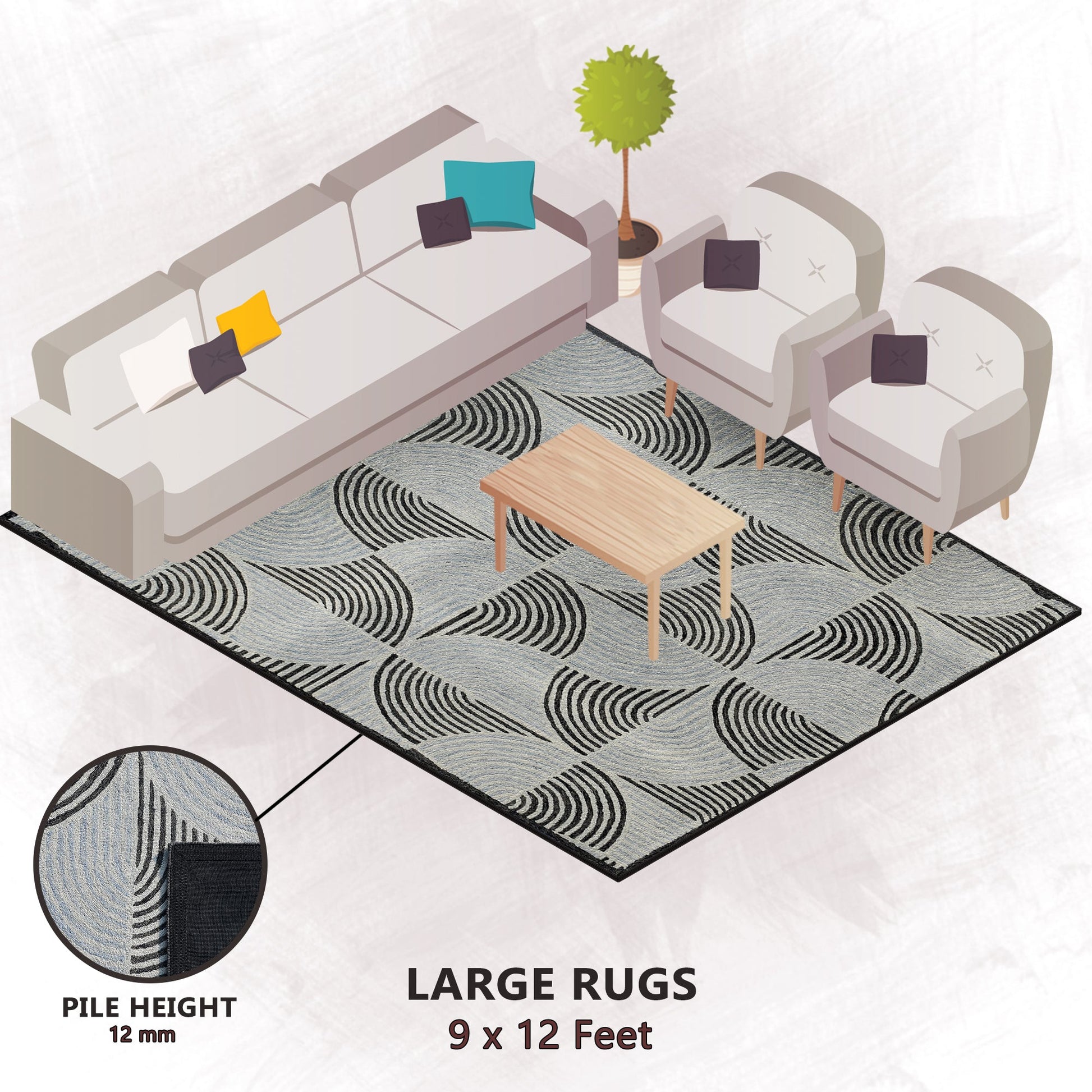 - Rectangular Area Rugs: 3X5, 4X6, 5X8, 6X9, 8X10 & 9X12