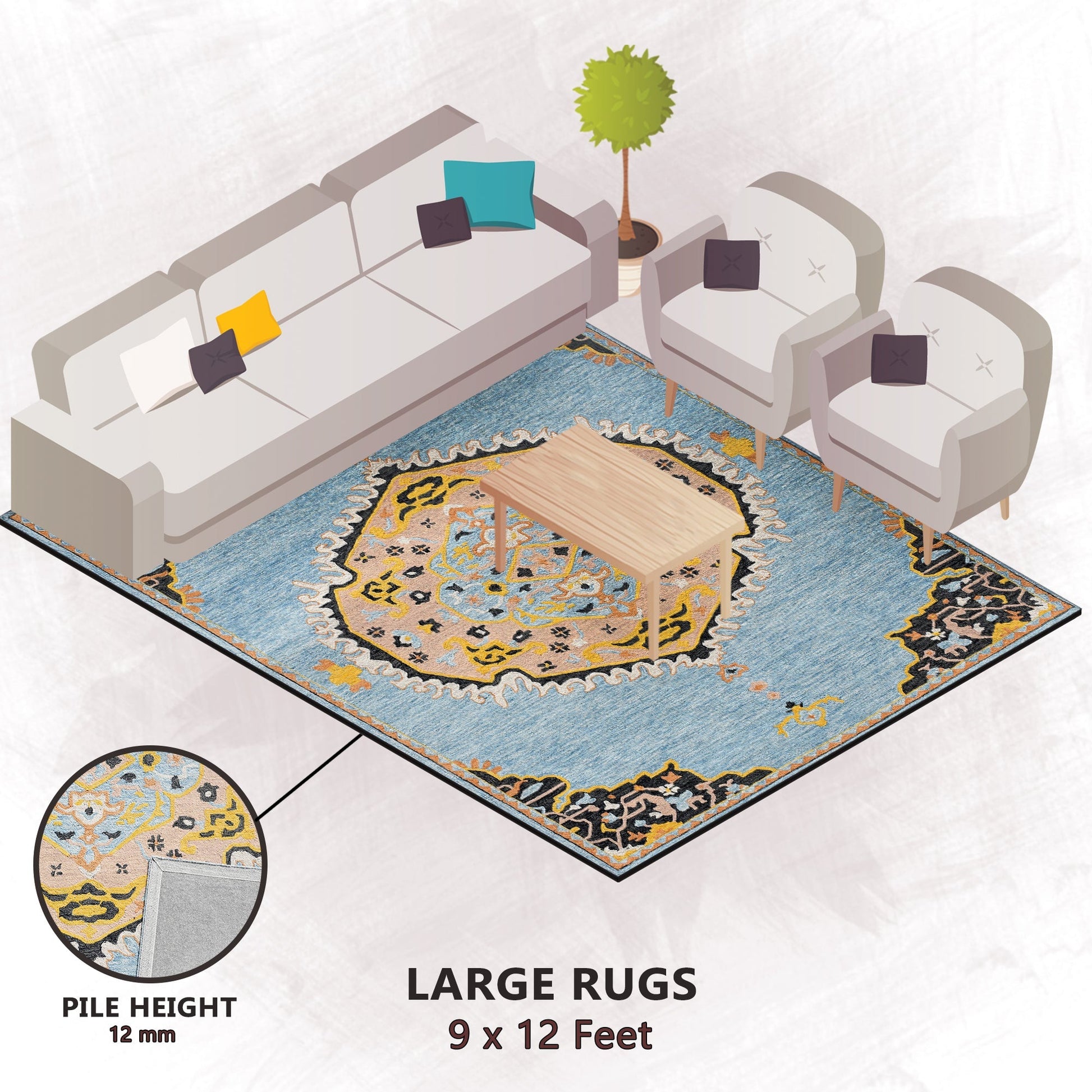 - Rectangular Area Rugs: 3X5, 4X6, 5X8, 6X9, 8X10 & 9X12