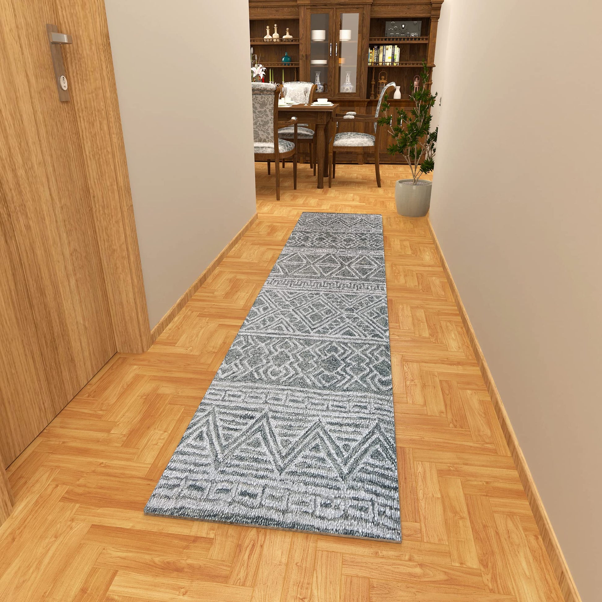 Premium Hand-Tufted Rug Made of 100% Wool - Still River Grey - 2x10 Feet