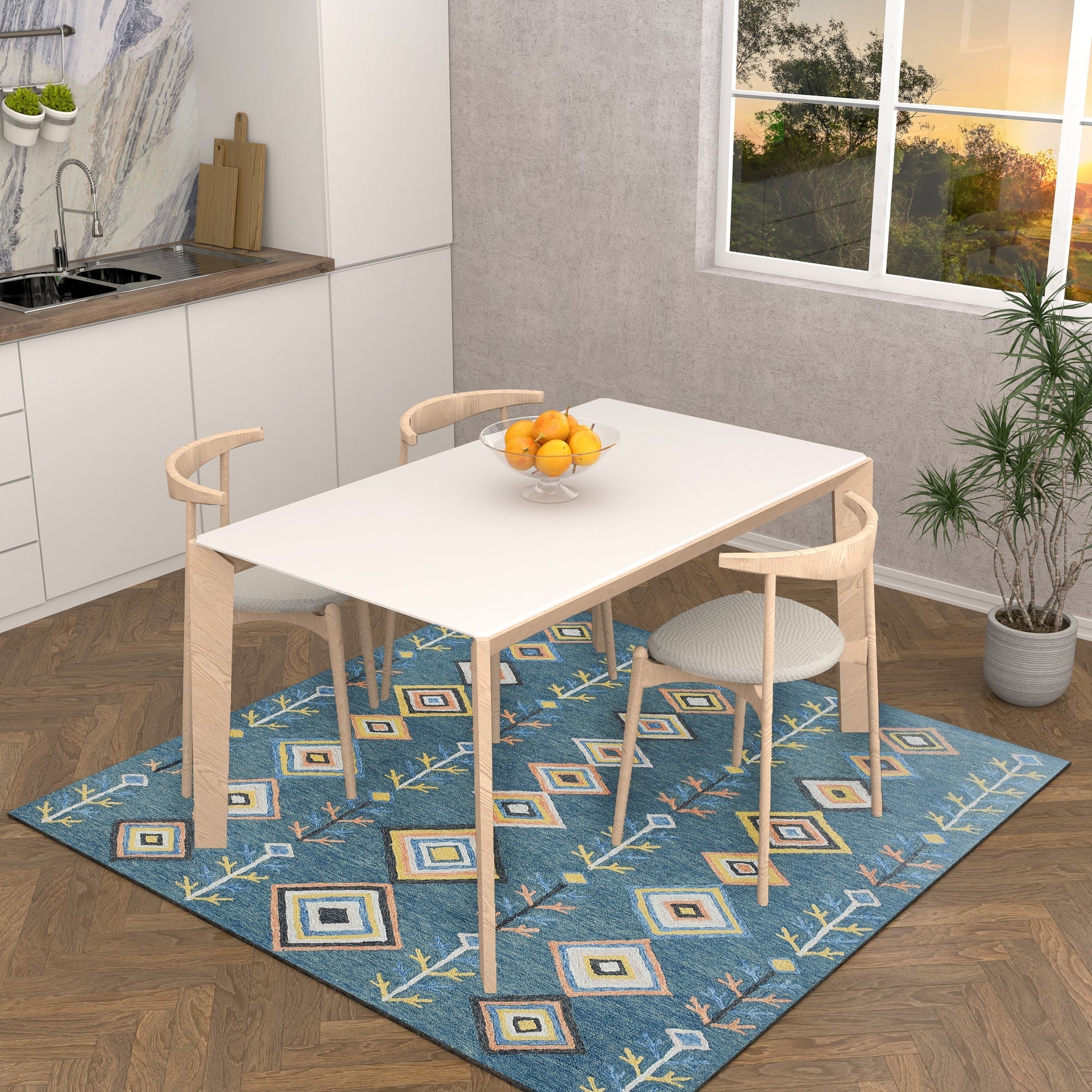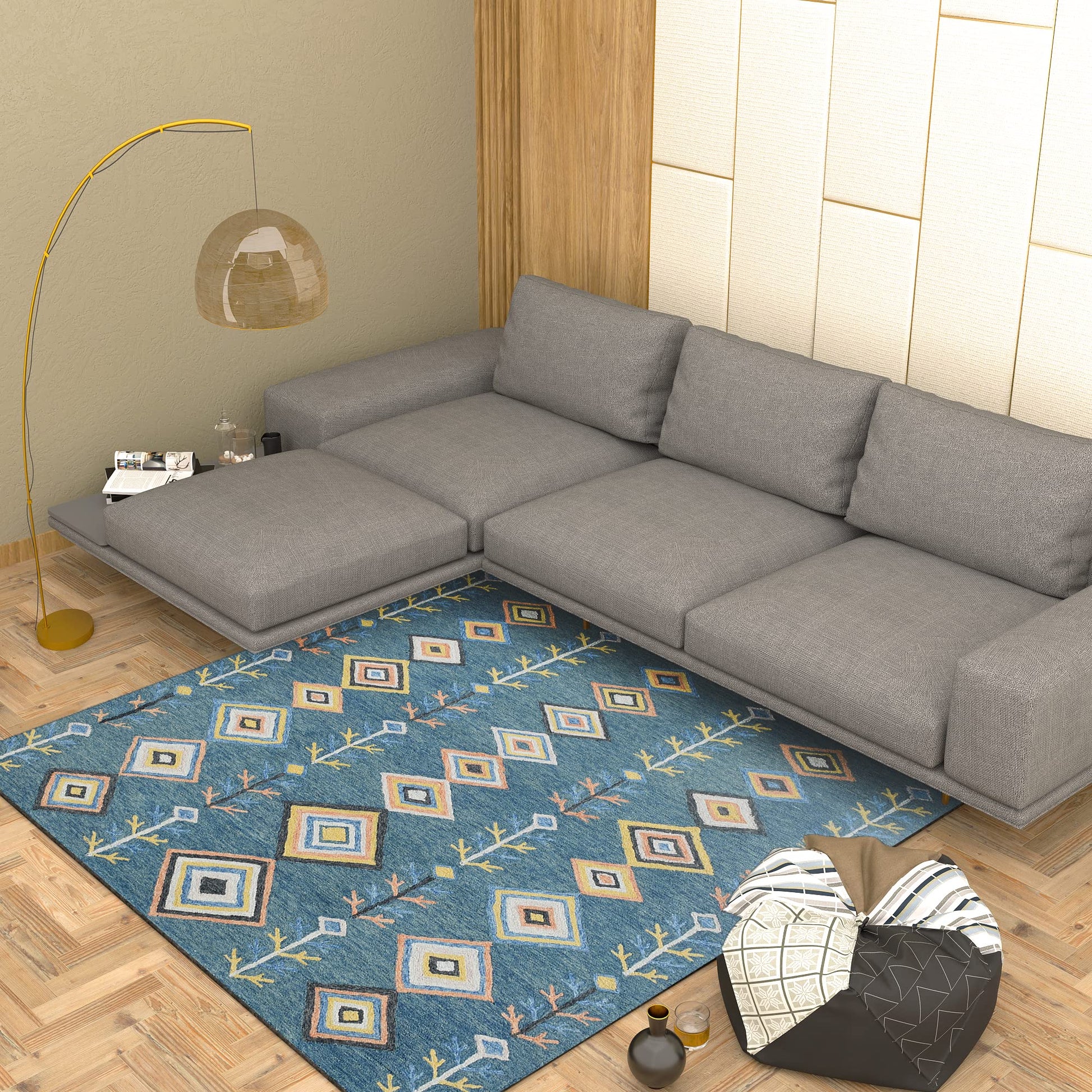 Handmade wool rug for a plus of style and freshness to your home. Blends into any home decors including boho, modern, industrial, contemporary and Scandinavian.