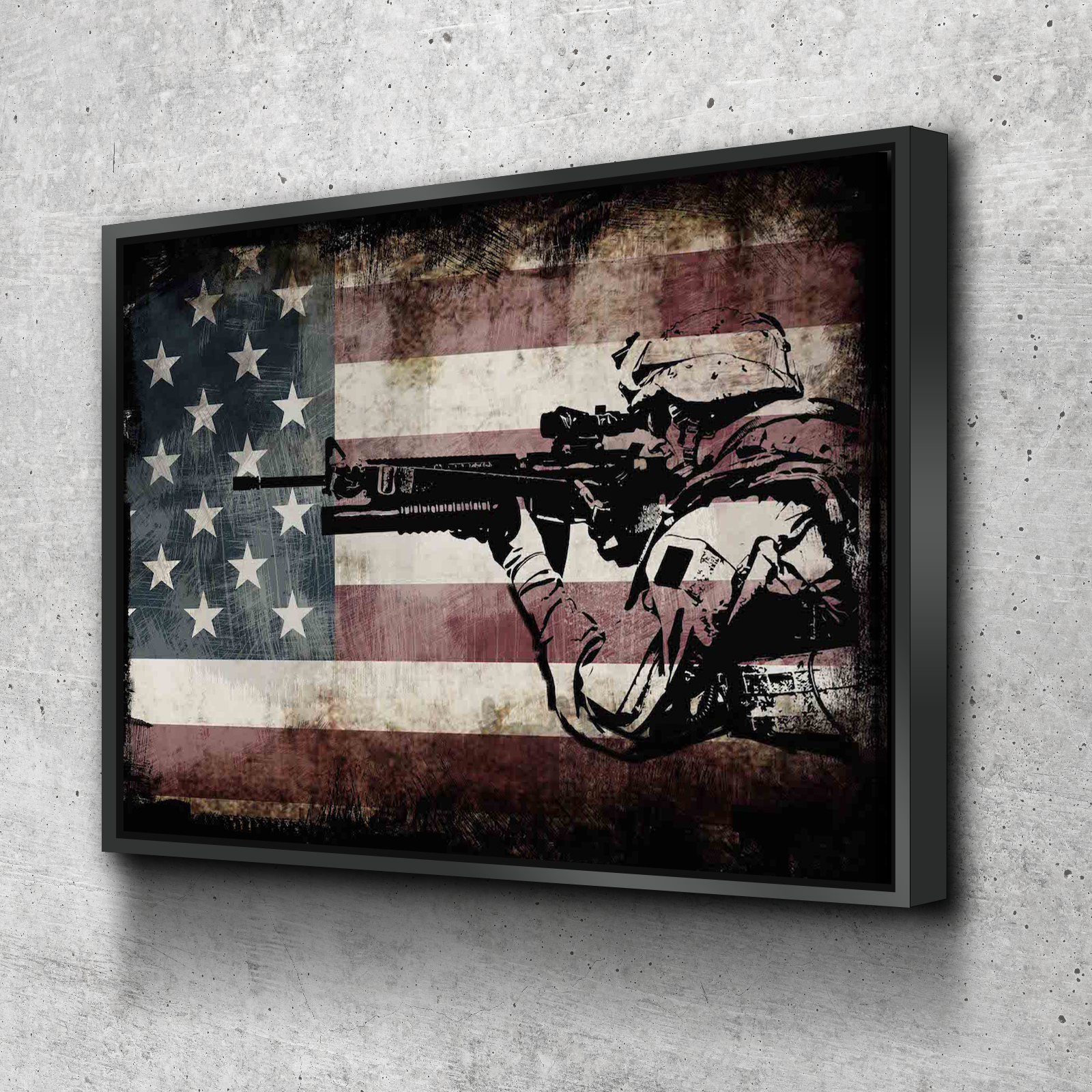 American Flag Decor | American Flag Art | Canvas Wall Art Poster Print | Rustic American Flag with Soldiers