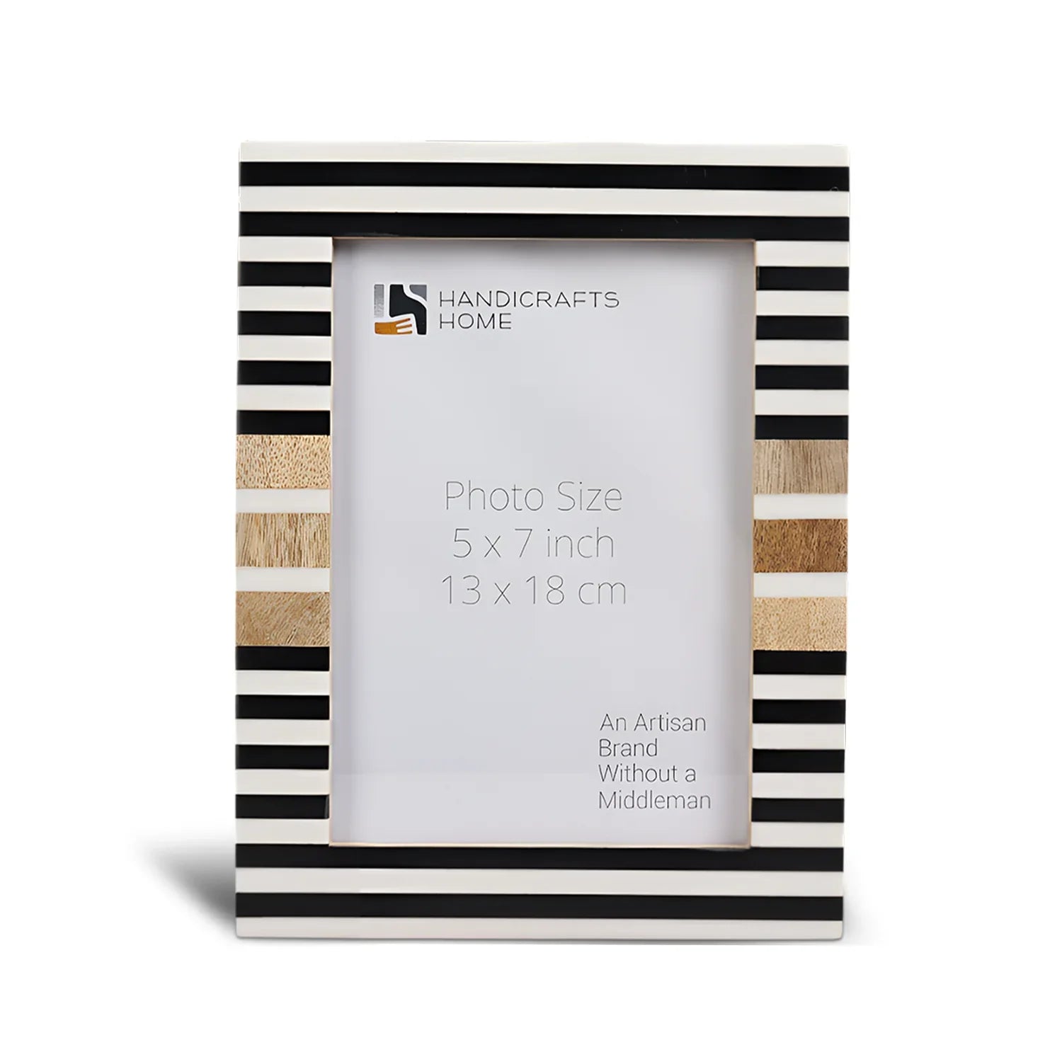 Wood & Resin Inlay Stripewood Picture Frame, Black & White